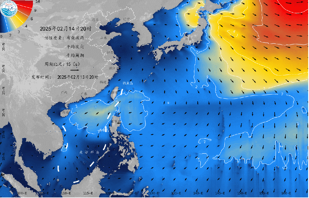 2月14~18日西北太平洋海浪数值预报预计未来一周,我国近海将出现2次大浪过程: