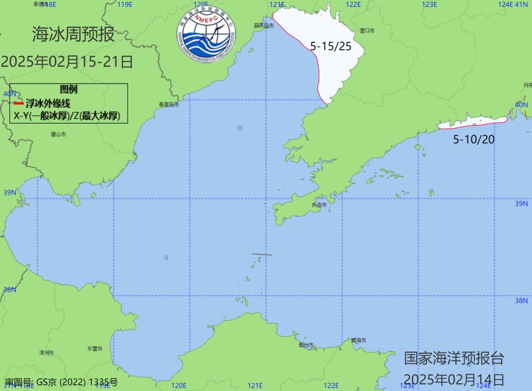 辽东湾最大浮冰范围20-30海里,一般冰厚5-15厘米,最大冰厚25厘米;