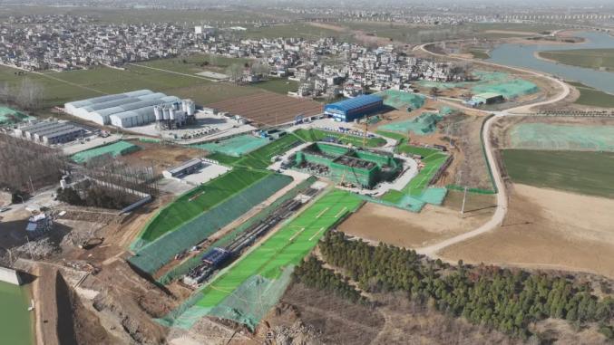 太和界首临泉集中供水1标头部泵站施工现场界首正在进行调蓄池土方开挖、填筑施工