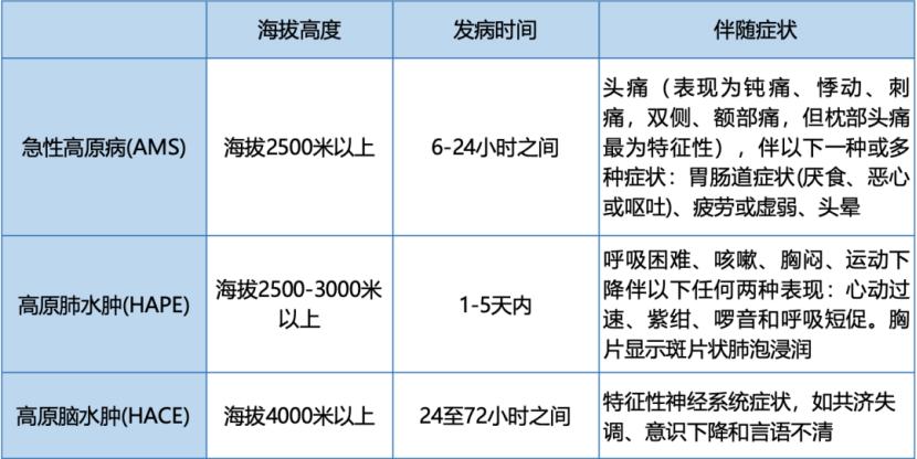 若在高原出现以下症状,需立即吸氧并下撤至低海拔地区: