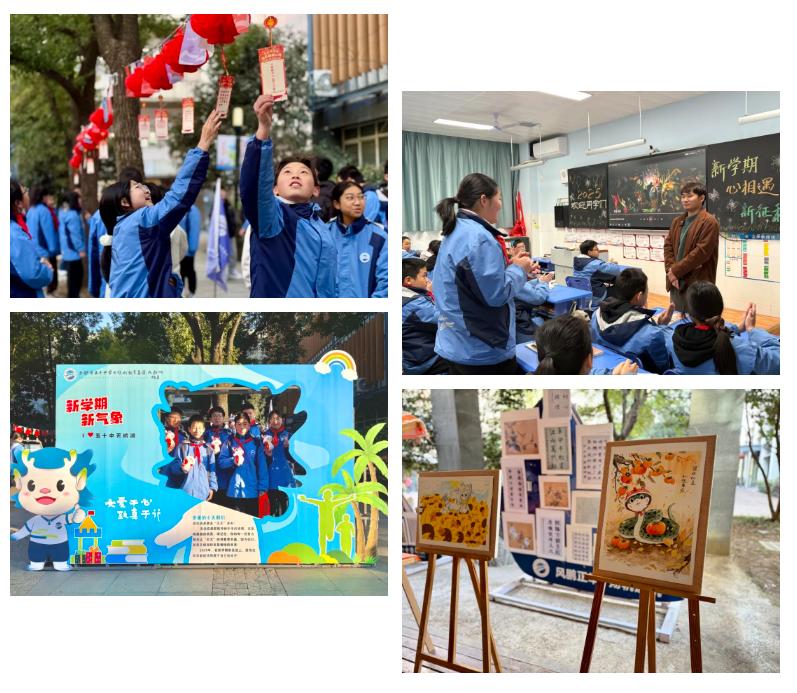 在合肥市五十中学天鹅湖教育集团天鹅湖校区,百余盏灯谜随风轻舞,将传统民俗与校园文化巧妙相融。同学们在教学楼前的“新学期·新起点”打卡墙前拍照留念。学校以“我命由我勇逐梦,灵珠破茧启新章”为主题举办了开学典礼,来自《哪吒2》特效团队成员——合肥合肥瀚灵数字科技有限公司有关人员,为同学们带来了精彩的“开学第一课”。