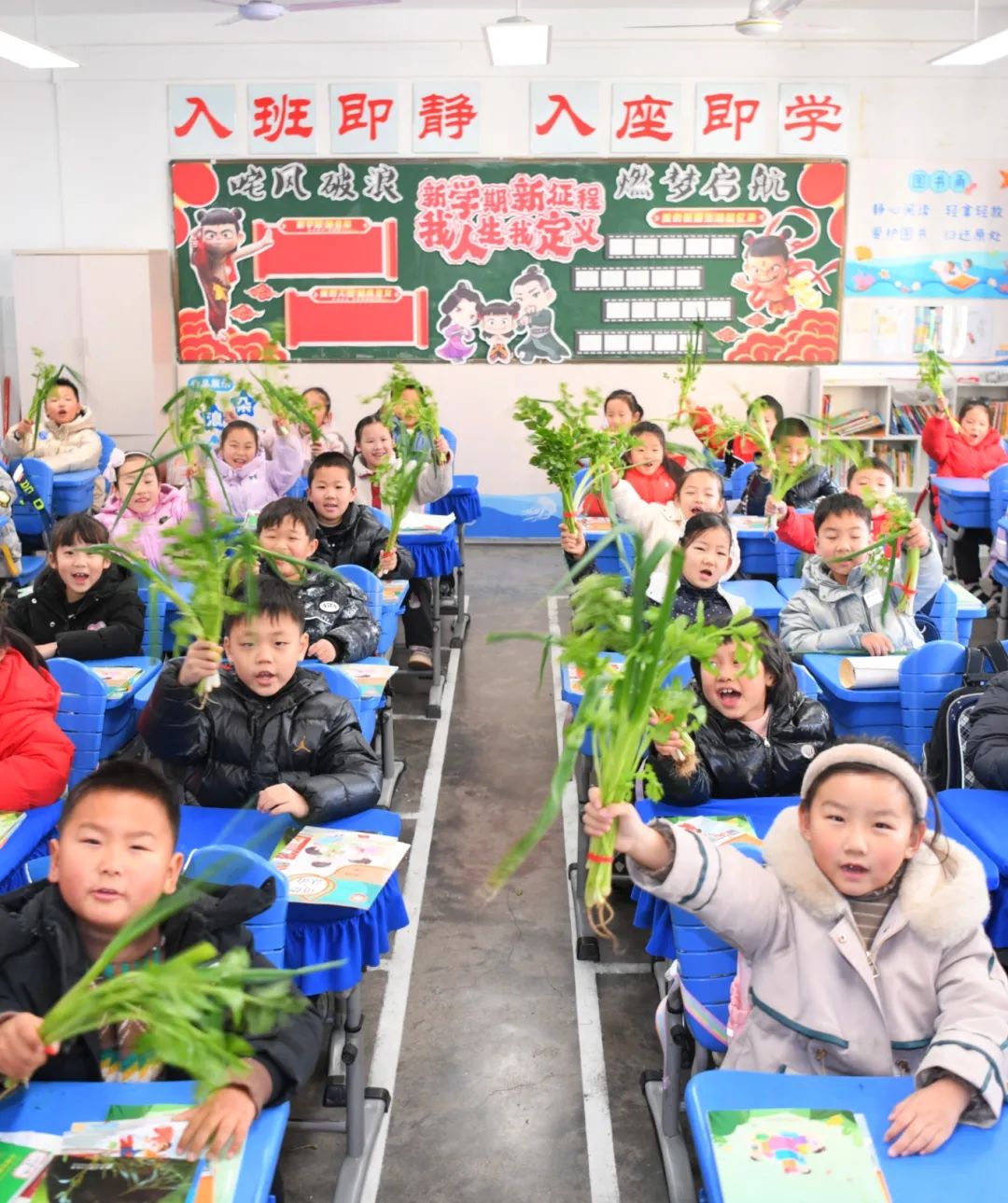 合肥市琥珀小学东校新学期,在合肥市琥珀小学东校,同学们领取到新学期的教材,“能量满满”开启新学期,大家还收到了一份特殊的礼物——“芹菜”和“大葱”,寓意着勤劳和聪明。