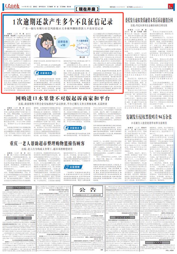 1次逾期还款产生多个不良征信记录广东一银行未履行征信风险提示义务被判删除借款人不良征信记录