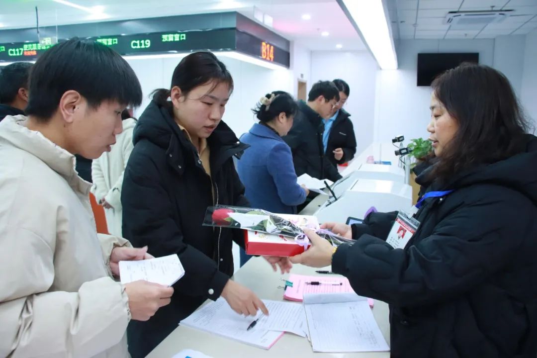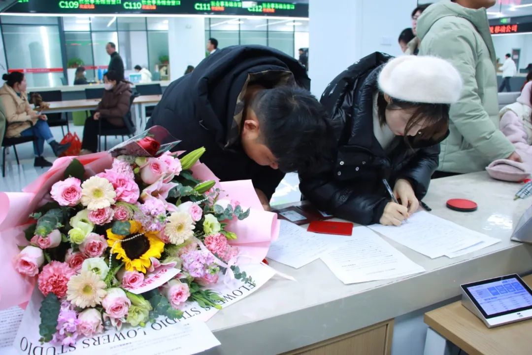 保健所也为新人送上了红玫瑰等甜蜜礼物