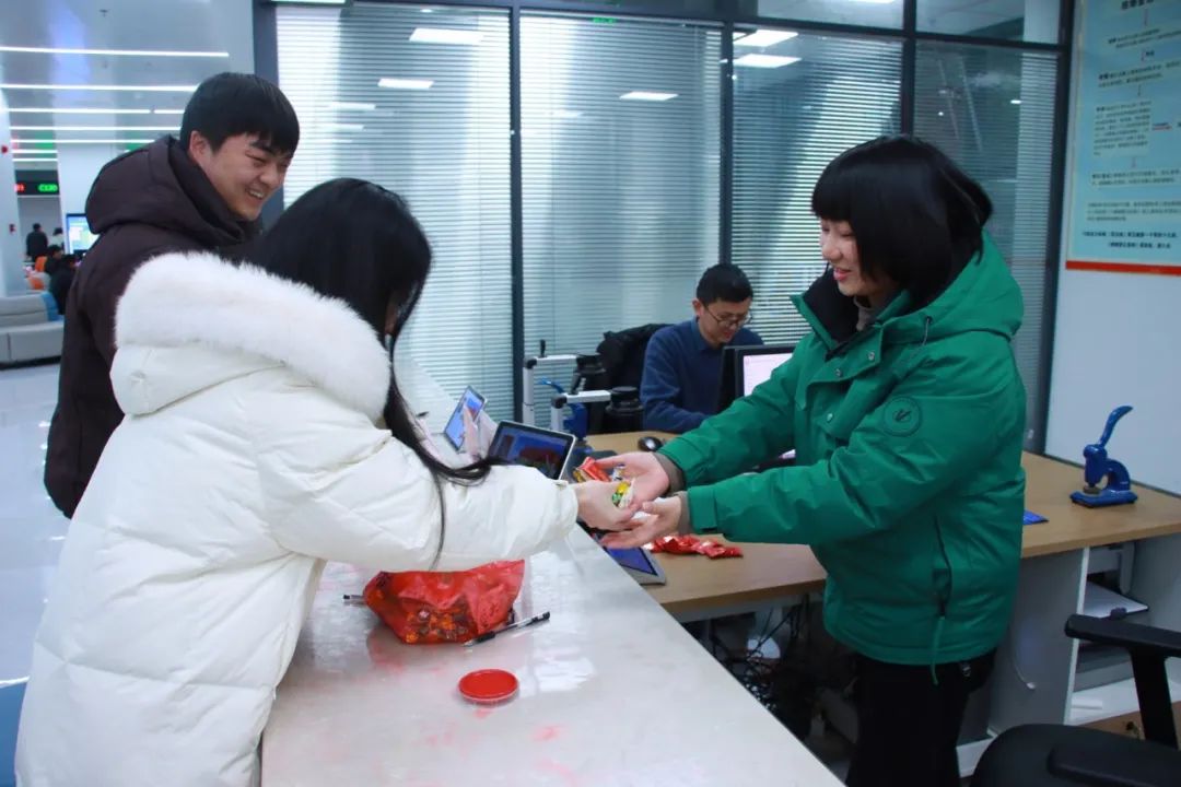 工作人员也收到了新人的甜蜜喜糖