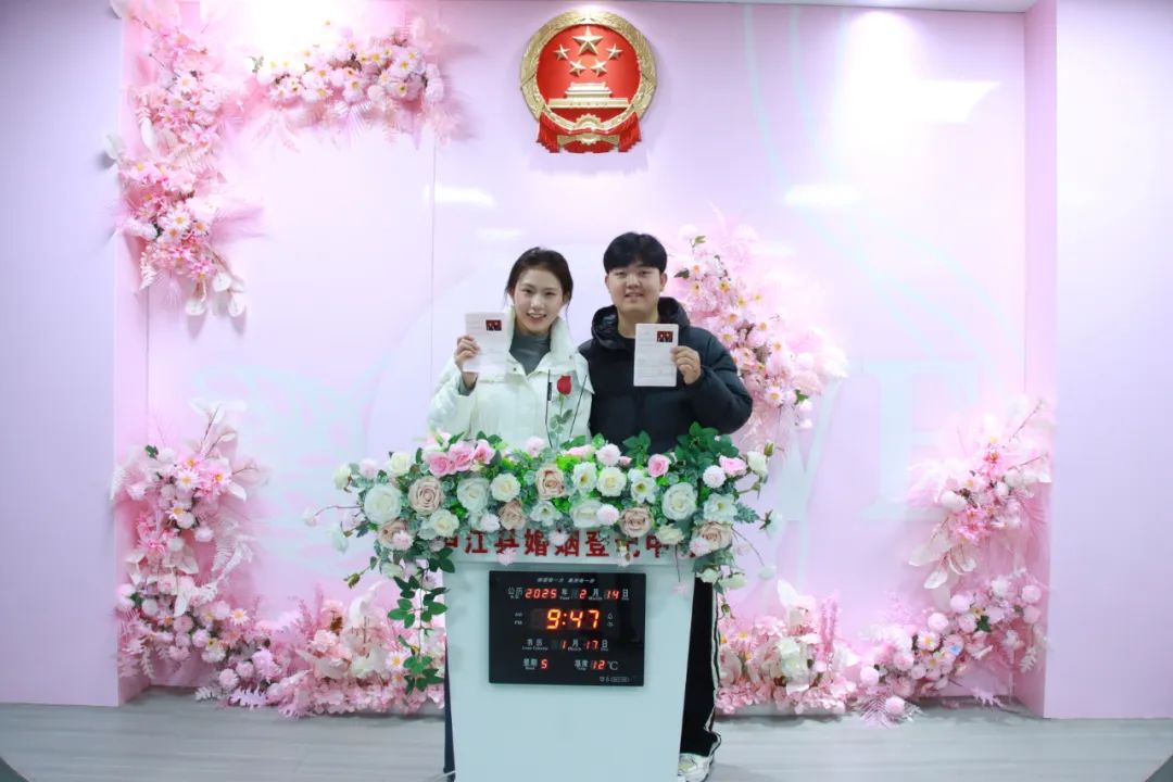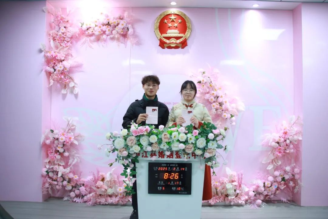 “这是你们的结婚证,祝你们幸福久久!”