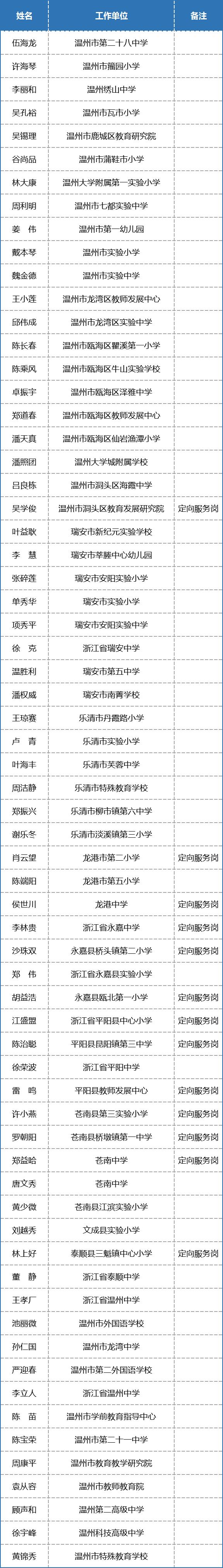 根据《浙江省教育厅办公室 浙江省人力资源和社会保障厅办公室关于做好2024年中小学和中等职业学校教师正高级专业技术职务任职资格评审工作的通知》(浙教办函〔2024〕203号),经各地推荐和浙江省中小学(幼儿园)正高级教师职务任职资格评审委员会、浙江省中等职业学校正高级讲师职务任职资格评审委员会评审,406名教师取得中小学正高级教师职务任职资格,44名教师取得中等职业学校正高级讲师职务任职资格。一起来看温州教师名单↓