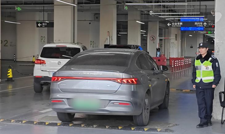 负责控制车辆出入的保安叶师傅介绍道,“网约车可以免费停车一小时,其他收费标准都是一样的。”