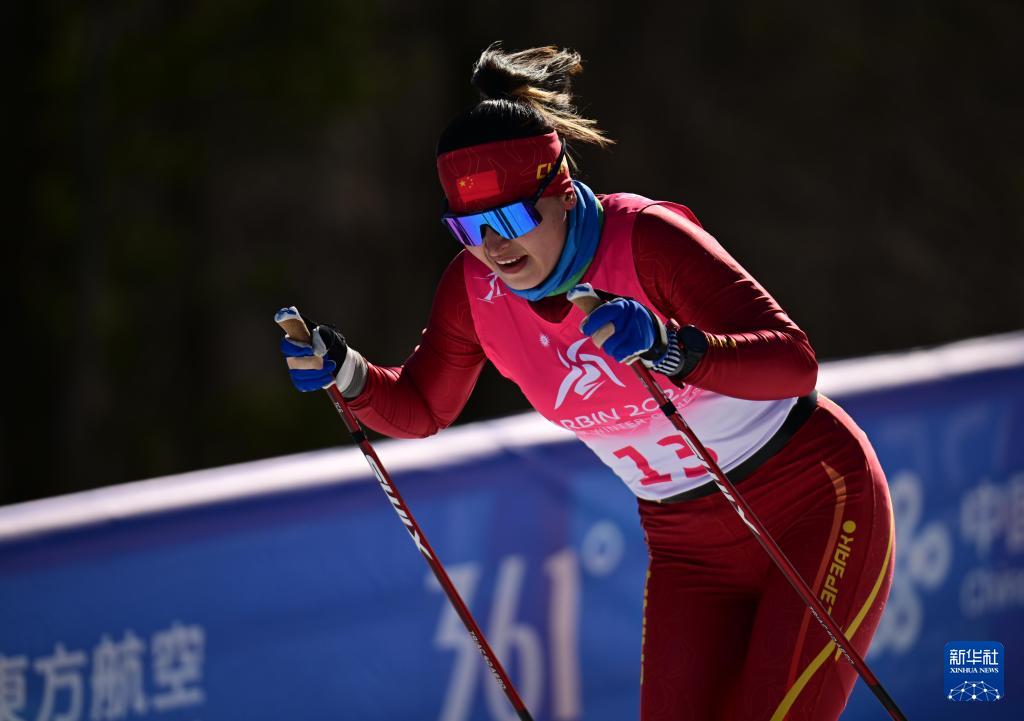 迪妮格尔·衣拉木江在比赛中2月9日,上体竞技运动学院2022级本科生巴亚尼·加林夺得亚冬会越野滑雪女子5公里(自由技术)金牌。