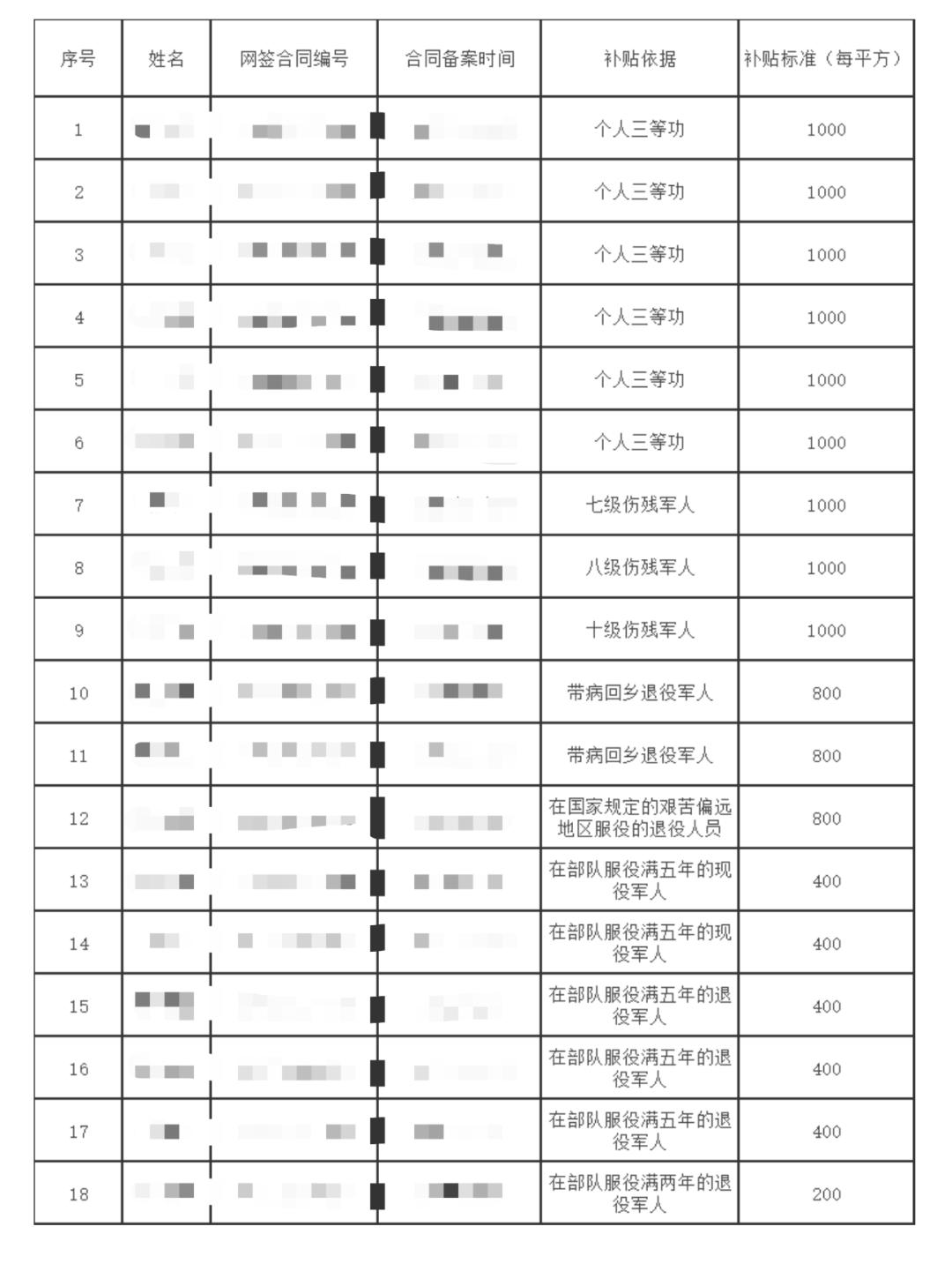 符合购房补贴名单