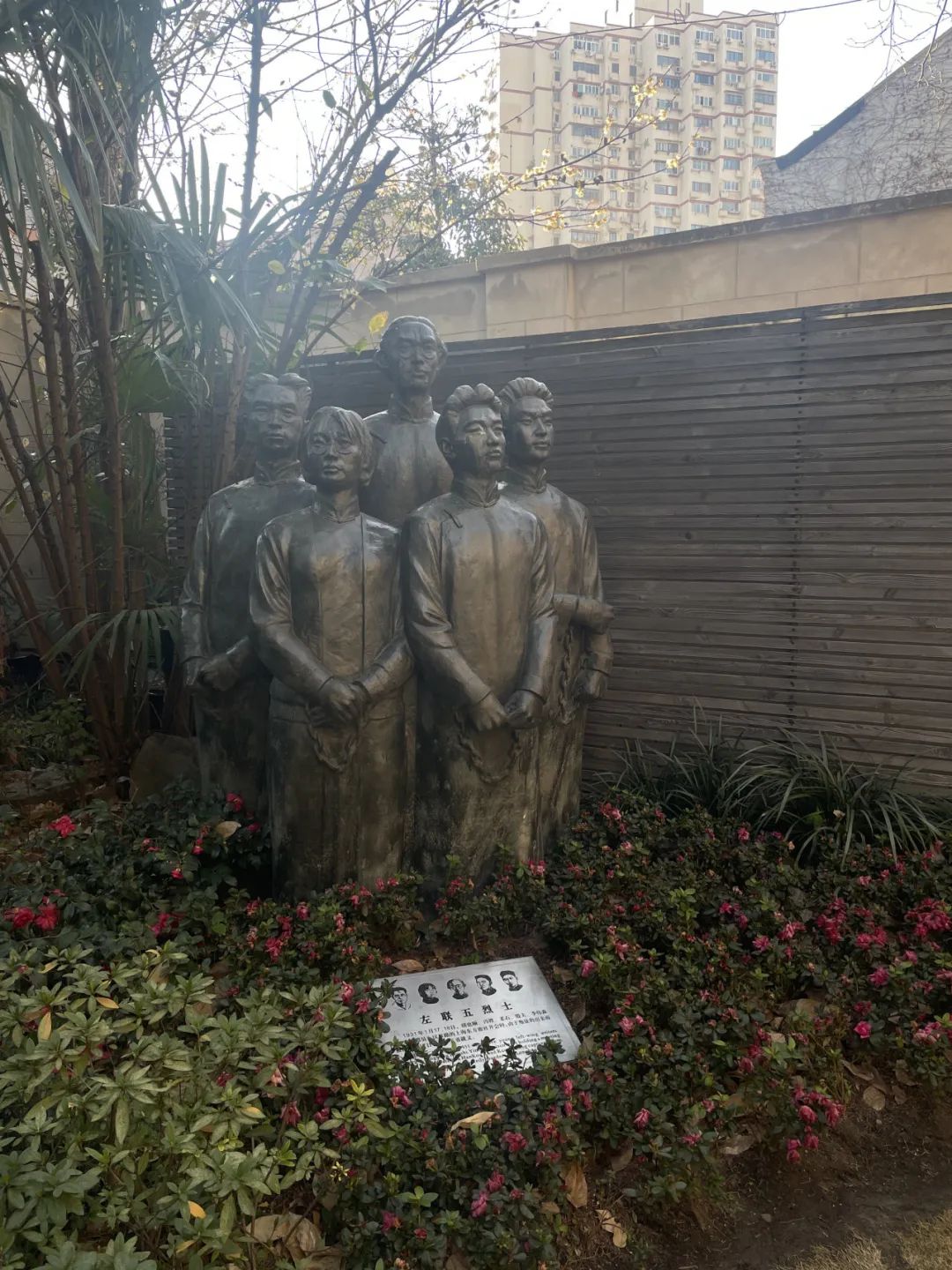 △庭院中的左联五烈士雕塑