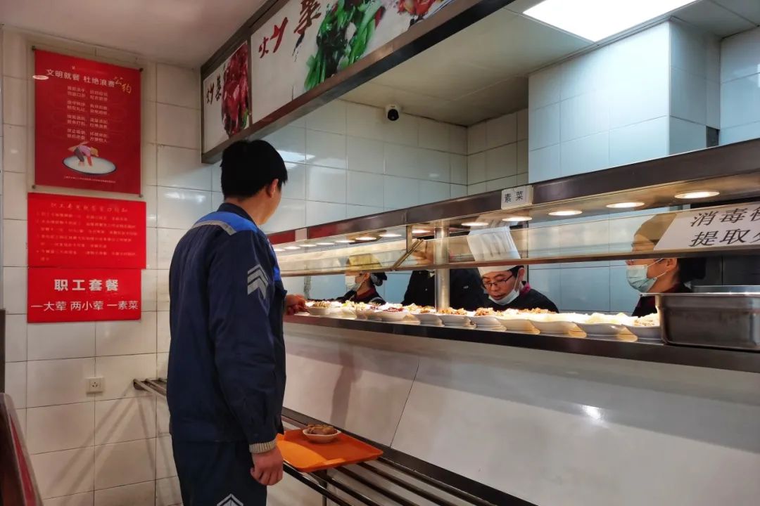 正值午间用餐高峰时段,记者来到巴士三公司双流路职工食堂,现场除了看到身着制服的职工陆续前来用餐,还有不少周边楼宇的白领也端着放满饭菜的餐盘落座,准备享用美味丰盛的午餐。