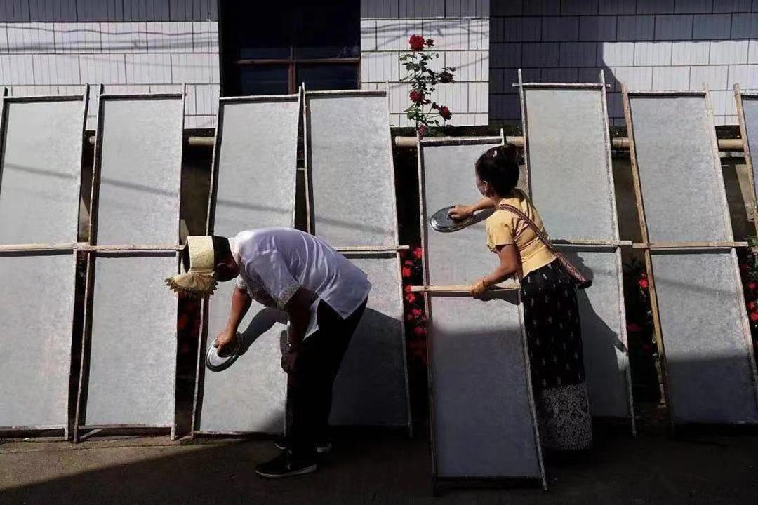 “勐混”傣语意为河水转道之坝。踏入勐混地界,不仅能看到一篇大自然用绿色与金黄谱写的壮丽诗篇,还能在每周六参加赶集活动。热闹的氛围,让人体验最地道的当地生活,这里不仅可以买到村民们自家种植或采摘的蔬菜、水果、野菜等,还可以“甩”上一碗正宗的勐混撒撇米线,鲜切的牛肉加上热气腾腾的米线,烟火气满满,让人垂涎欲滴。傣族手工造纸