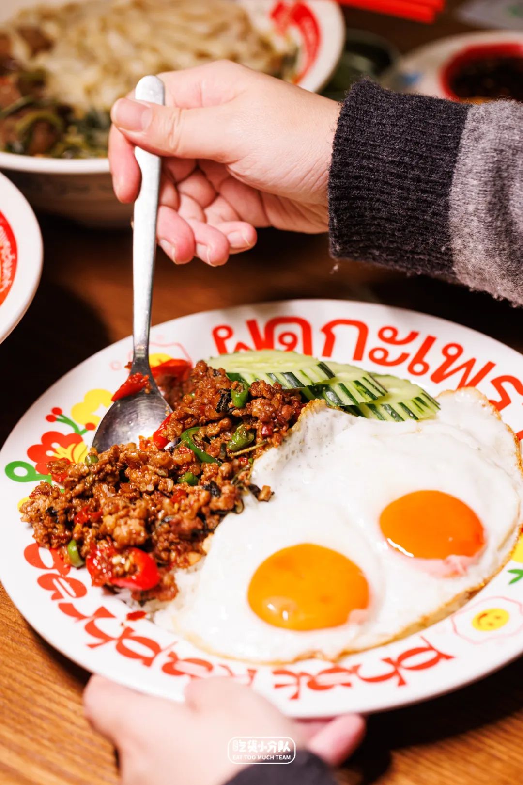 泰国美食江湖的“扫地僧”、被泰国人刻进DNA里的国民料理——看似平凡却暗藏乾坤的“打抛饭”,让很多人在泰国当地吃过一次就念念不忘。放打抛叶的才是正宗打抛饭,如果替换成其他香草,就像冬阴功里不放香茅,完全是另一种东西。它家用的不是罗勒叶,不是九层塔,正是从泰国来的打抛叶。