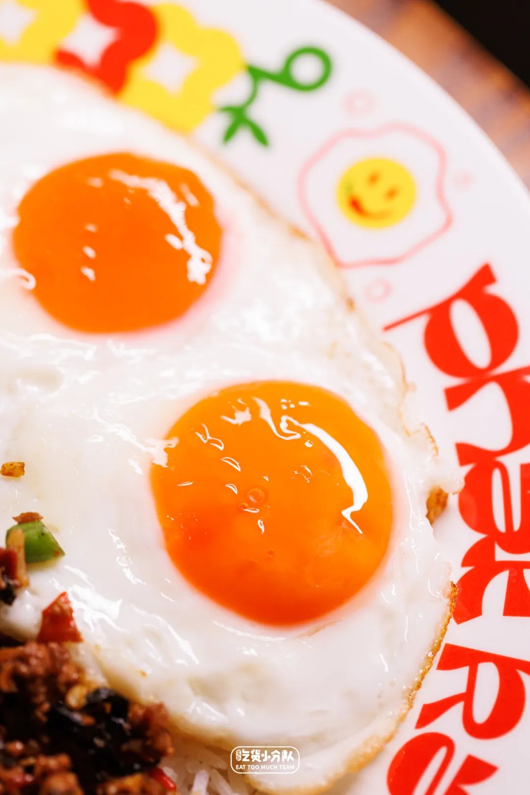 流心的荷包蛋是打抛饭的标配煎得很漂亮的双蛋,也是这碗饭的彩蛋