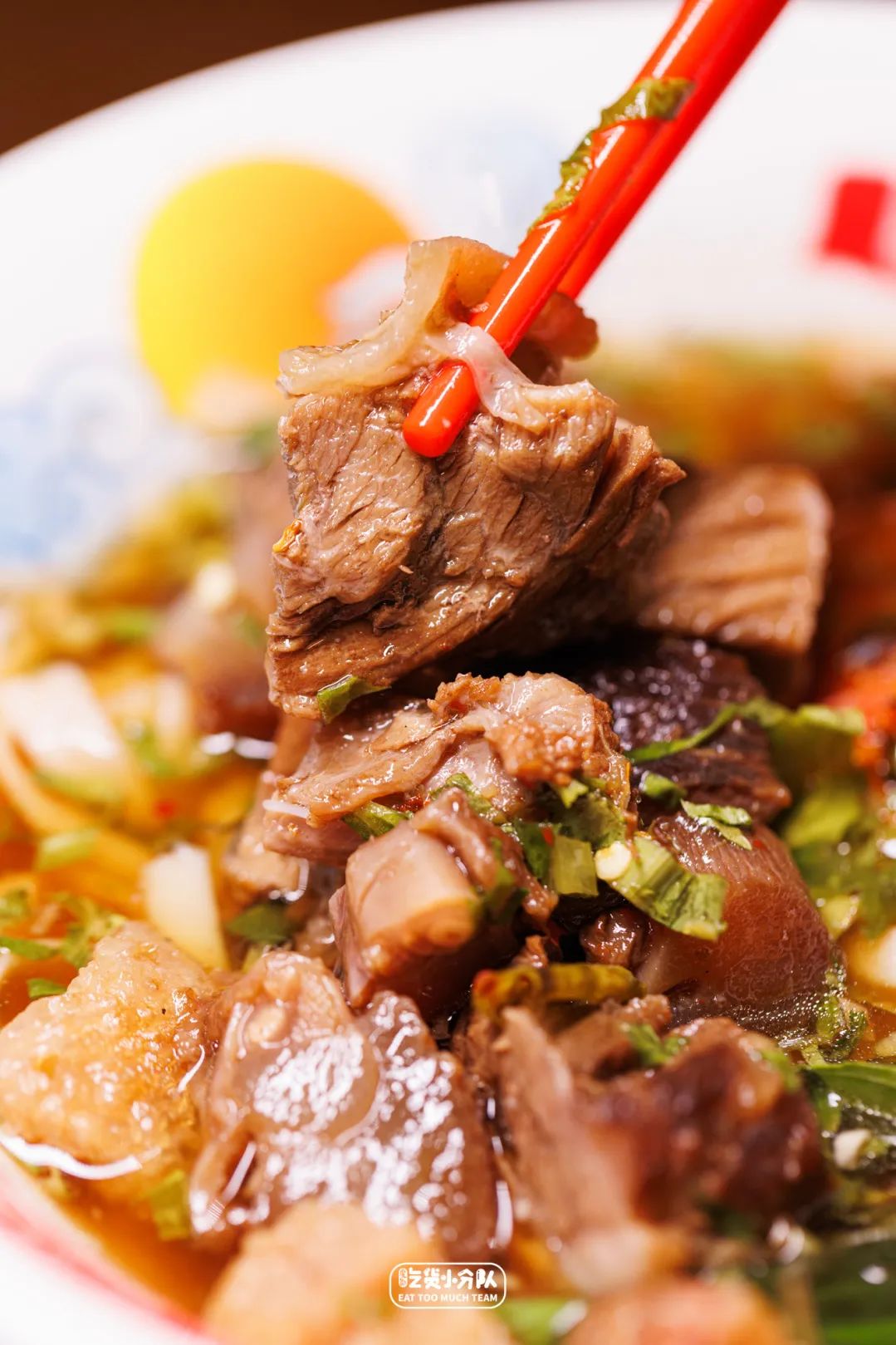 油光发亮的牛腩大块而地道,花三四个小时炖得的质感就已不错,有纯肉有牛筋有半筋半肉,牛筋软糯,牛肉软嫩,入口一点不柴,分量几乎铺满半碗。