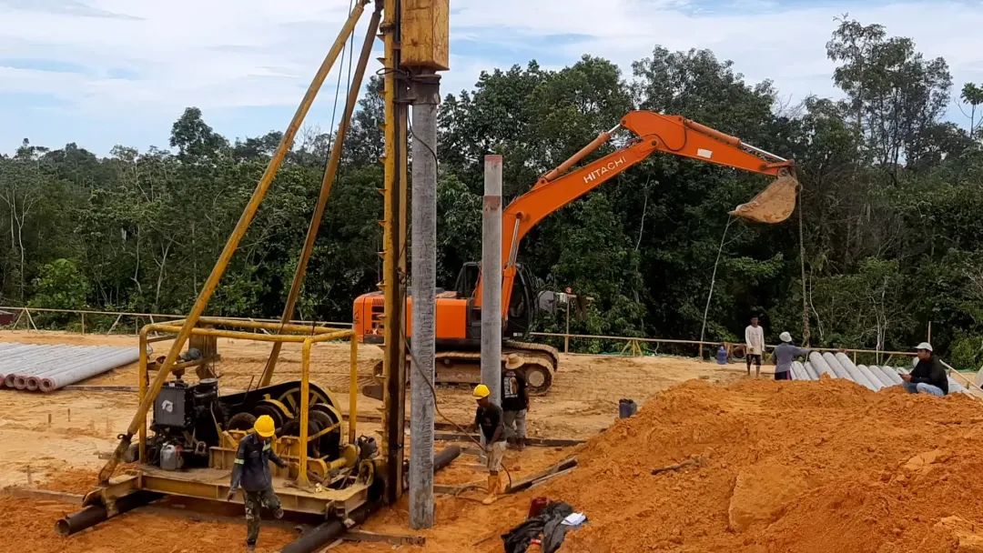 抬头一看,能看到工地上竖立起一个个巨型机械,正在有节奏地锤击地面。