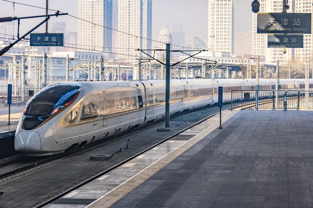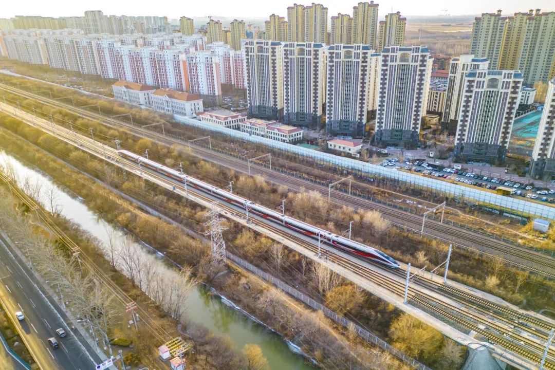 京津城际铁路是中国第一条设计时速350公里的高速铁路。京津城际列车以省时舒适的优势,拉近了北京、天津两个直辖市的距离,成为“双城生活”上班族的不二选择。