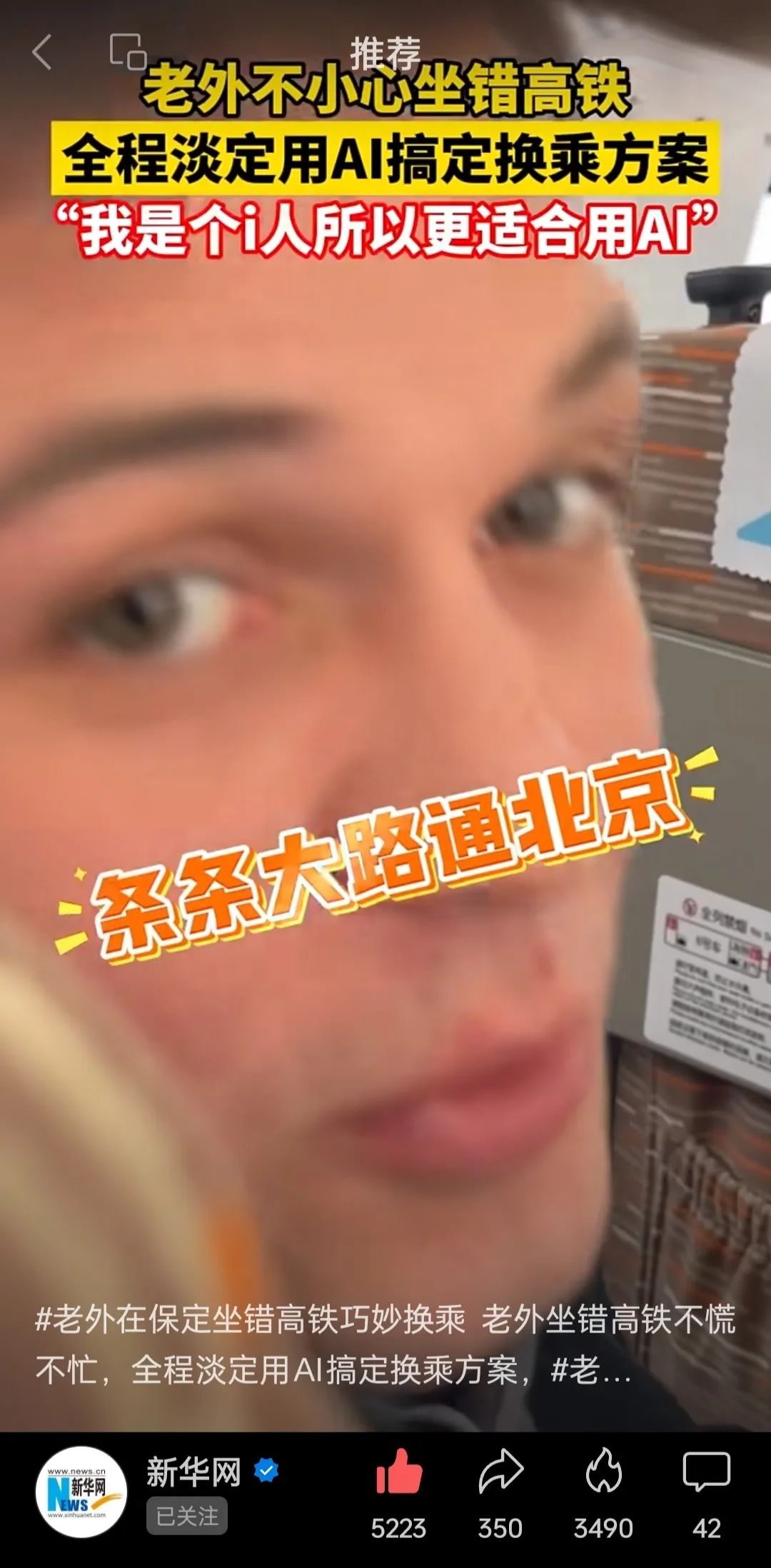 外国小哥用AI搞定高铁出行方案后感叹:条条大路通北京!