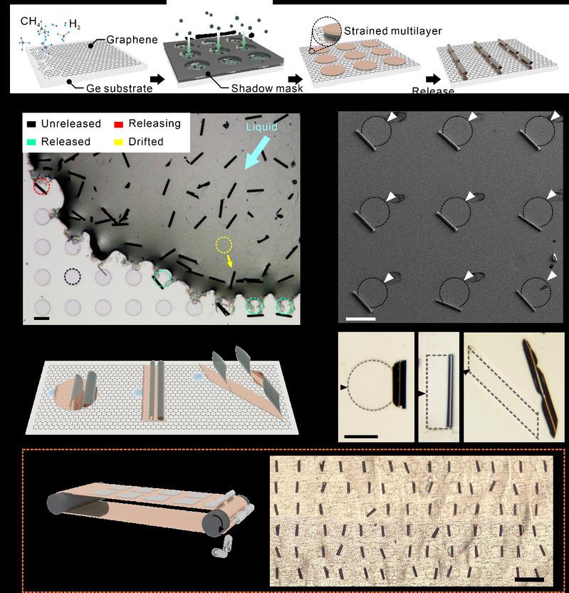 图 基于石墨烯衬底上的纳米薄膜的三维卷曲结构构建
