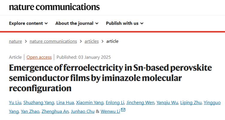4. 光电研究院、材料科学系褚君浩院士和李文武课题组设计实现锡基钙钛矿铁电半导体薄膜及其低功耗晶体管