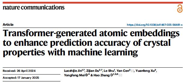 4. 信息科学与工程学院张浩课题组提出基于Transformer架构的通用原子嵌入方法