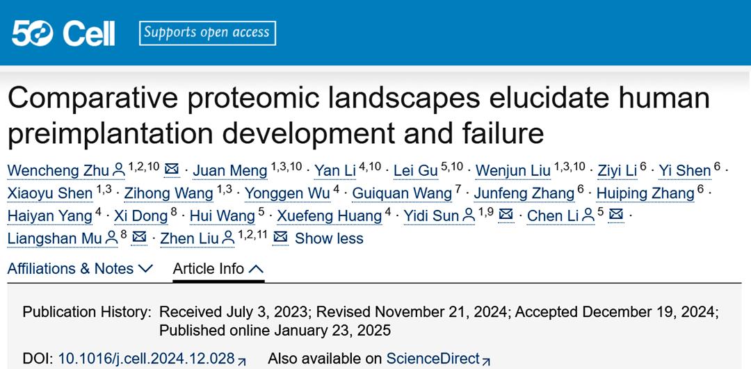 2.Cell|复旦大学附属中山医院木良善团队蛋白质动态层面解读人类早期胚胎发育的成功与失败