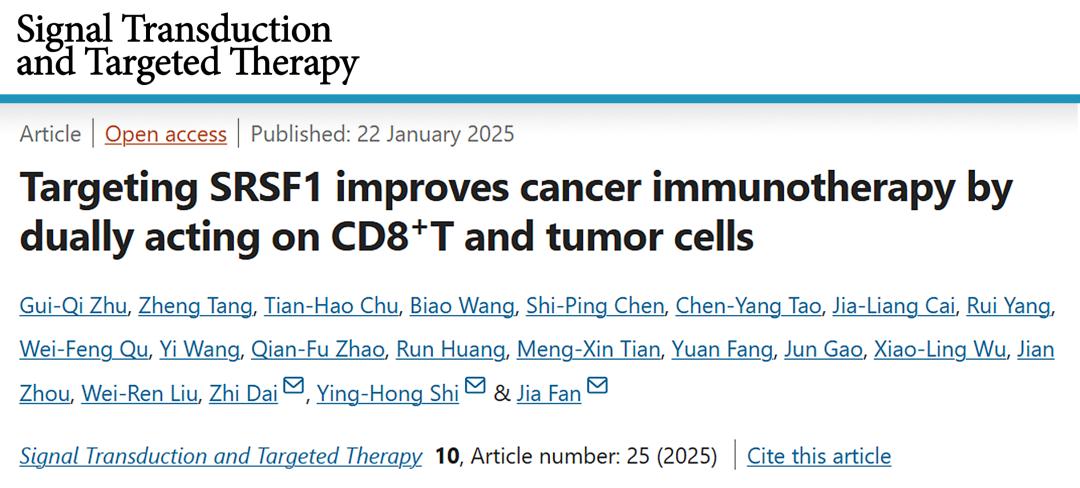 10. STTT|复旦大学附属中山医院樊嘉院士、史颖弘教授、代智教授团队揭示针对剪接因子SRSF1有效抗癌的双重机制