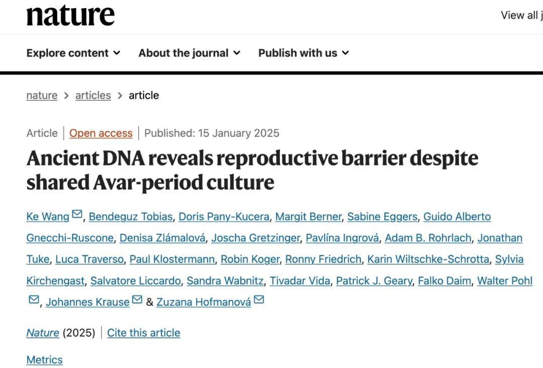 1月25日,生命科学学院青年研究员王轲团队联合德国马克思普朗克进化人类研究所、奥地利国家科学院、奥地利国家博物馆、捷克马萨里克大学携手在《自然》(Nature)发表题为《古DNA揭示阿瓦尔时代古人群在遗传屏障下共享(东亚)文化特征》(“Ancient DNA reveals reproductive barrier despite shared Avar-period culture”)的研究成果。研究聚焦阿瓦尔人远距离、跨大洲迁徙的历史揭示东亚文化伴随人群移动、向西辐射的文化现象为人群迁徙与文化扩散是否对齐的经典问题提供了一个文理融合创新研究的示例,发现不管是以东亚祖先成分为主要来源的阿瓦尔人墓地,还是以欧洲祖先成分为主要来源的阿瓦尔人墓地,不同墓地遗址之间的遗传关联多由女性所缔结。这表明,作为配偶、女儿或母亲等身份伴随着更高的人口流动性,这为后续深入理解古代人口的婚配制度、复杂社会结构形成及其与祖先来源之间的相互关联提供重要启示。团队文理结合特色明显,吸纳群体遗传学、体质人类学、考古学、历史学等多学科数据和证据,将基于量化的DNA分析与体质人类学、考古学中的定性方法相融合。通过722例古人基因组数据,研究重现了两个旅居欧洲的中世纪东亚古代家庭氏族的百年谱系,深入解析了共享的阿瓦尔游牧文化特征下两个家族截然不同的遗传特征。