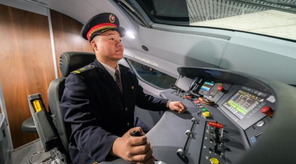 2月9日8时29分,石家庄电力机务段G3681次高铁列车司机李亚宁精神抖擞、一丝不苟操纵列车。