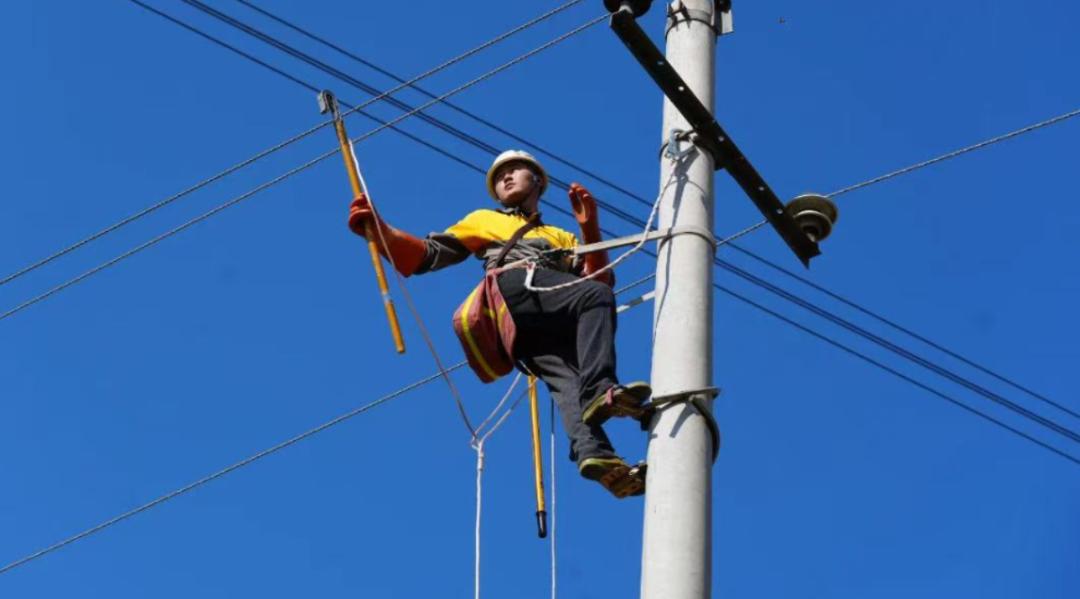 2月15日10时50分,石家庄供电段电力线路工侯银海更换避雷器。