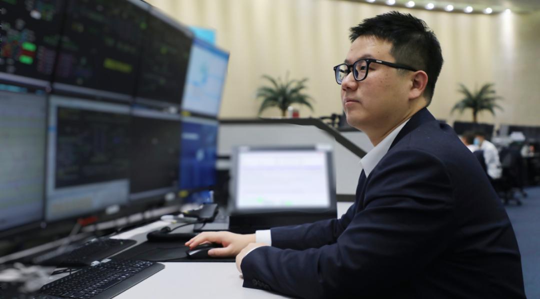 2月18日8时43分,调度指挥中心列车调度员王静盯控高铁列车出库。