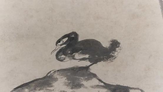 (《荷花双凫图》〔局部〕,八大山人绘)“覆杯水于坳堂之上,则芥为之舟;置杯焉则胶,水浅而舟大也”这一层意思对“水之积也不厚,则其负大舟也无力”来说属于喻意,后者属于正意。然后“水之积也不厚,则其负大舟也无力”对于下边“风之积也不厚,则其负大翼也无力”来说它又变成喻意,而后者是正意。这里第一次点出“风”字,意思是说水少了连个杯子都浮不起,水浅舟大,来比喻风不大不厚托不起鹏的巨大重量,一层套一层,已经初步点出鹏是不逍遥的。前边有“野马也,尘埃也,生物之以息相吹也”,野马、尘埃是由气把它吹起来的,接着 “且夫水之积也不厚”这一层,又用水托起船来做比喻,说明如果风不足够大,那么笨重的大鹏是托不起来的,所以大鹏根本没有自由,没有逍遥,它的行动非常不方便。