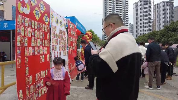 家长带领孩子来到红包墙揭红包。孩子们在家长的带领下,开心地来到红包墙揭红包。红包里有着老师们精心设计的的刮刮卡,卡上写着做一次善事、和爸爸妈妈完成一次家务、得到一只棒棒糖等神秘小礼物,每一个红包都让孩子们惊喜连连。