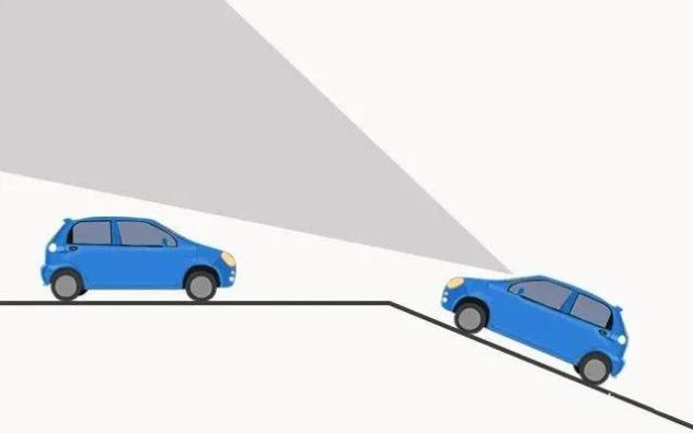 上下坡时:车辆在上坡时,会与坡面形成夹角,出现视野盲区,可能无法发现对向车辆及坡道上的其他障碍物。坡上的车辆在下坡时,也可能遇到此类情况。
