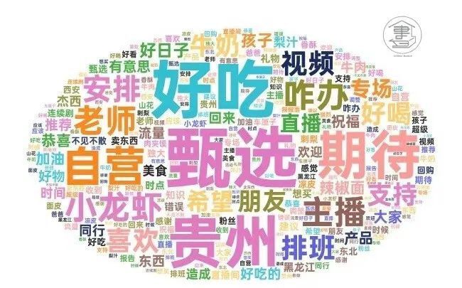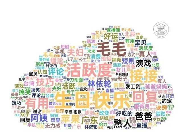 词云图中,祝主播孩子“生日快乐”,称主播为“熟人”等,表现了用户对主播的亲近。通过分享日常与观众形成情感联结,已成为主播们固粉的重要方法。这种情感联结能转化为强大的粉丝粘性和购买力。“搞笑”“演戏”“短剧”等词揭示剧情演绎在直播带货中的独特魅力。通过在生活化的剧情中融入产品信息,观众在半真半演的互动中自然地了解产品。而“活跃度”“接接”“有用”“回复”“技巧”等词都与直播带货的抽奖环节密切相关,说明设置有关商品、需达到一定要求才能参与的抽奖极其有利于促销和吸粉。