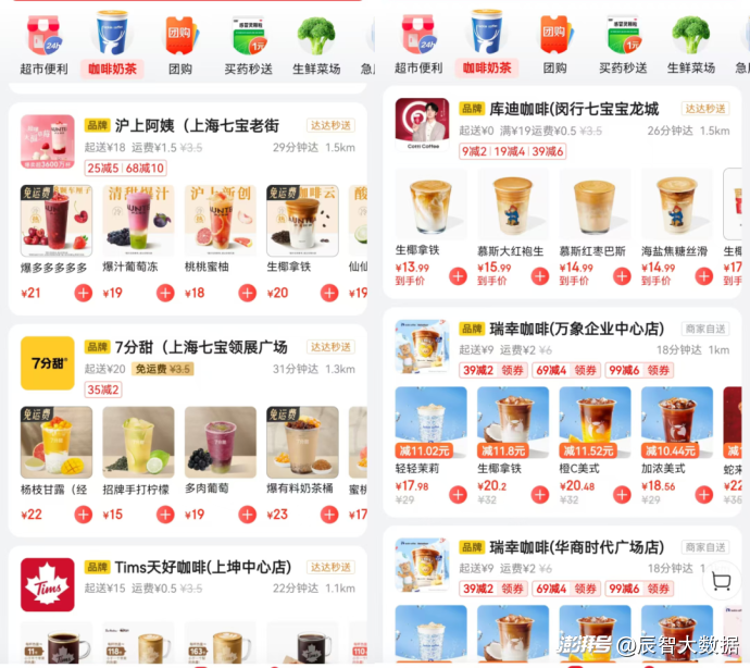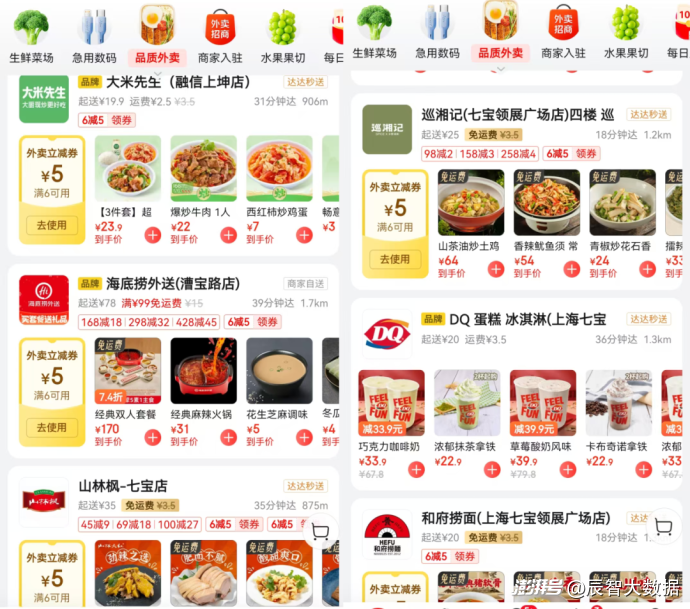 以小编所在的上海为例,目前已有不少餐饮企业入驻京东外卖,既有快餐品牌如大米先生、魔都三兄弟、和府捞面等,也有茶饮咖啡品牌如瑞幸咖啡、霸王茶姬等,甚至海底捞、巡湘记等正餐品牌也积极响应。