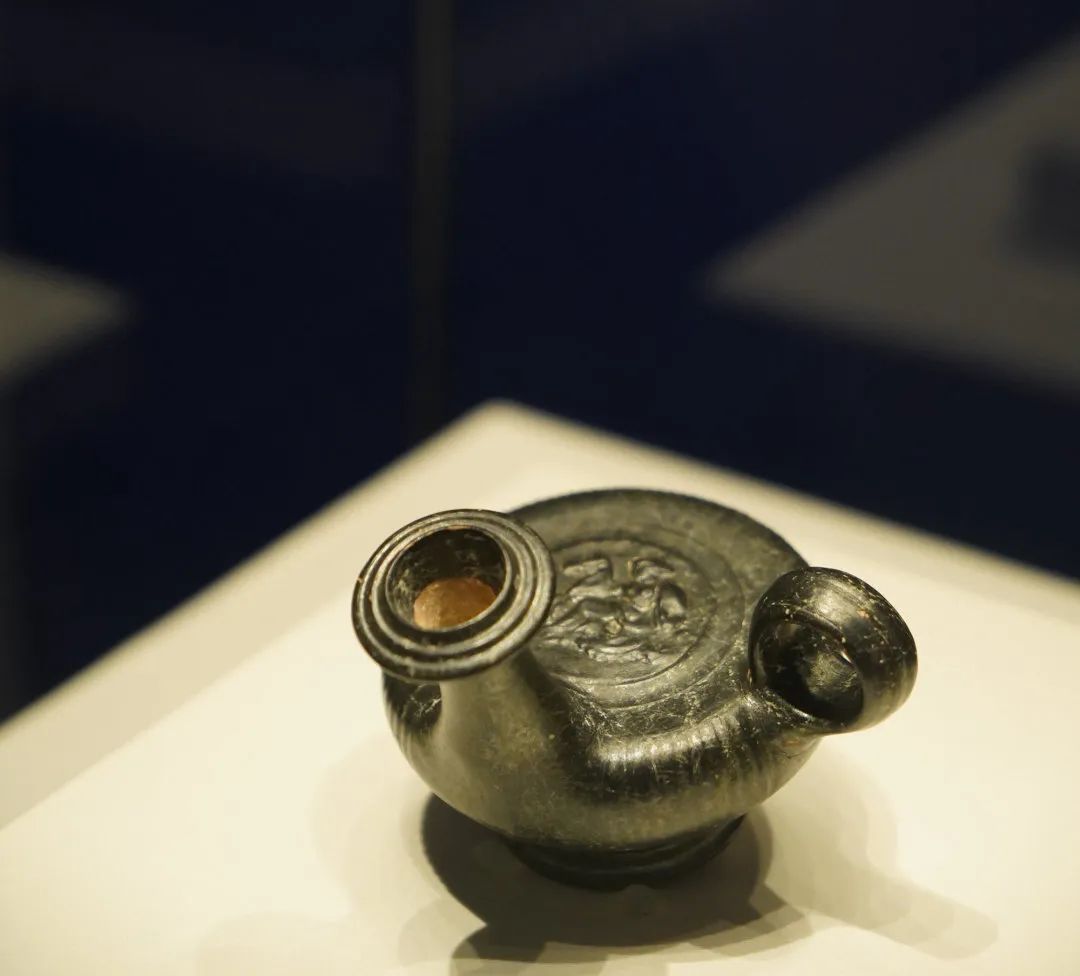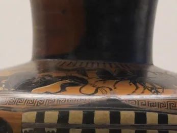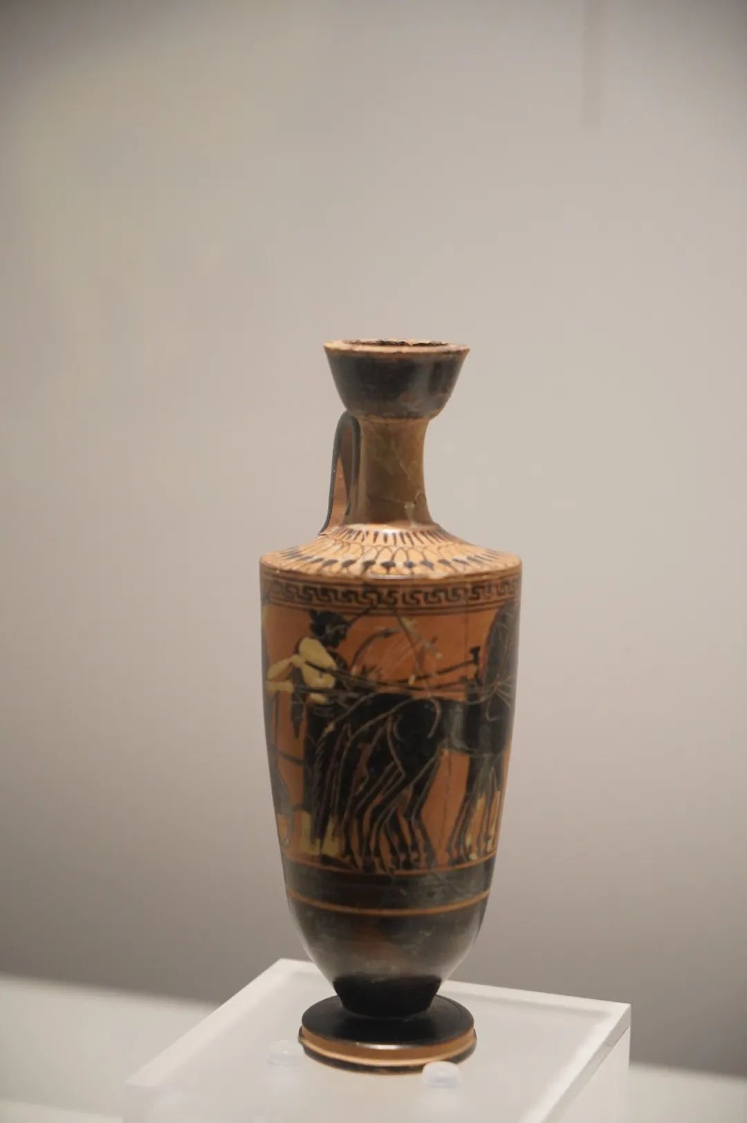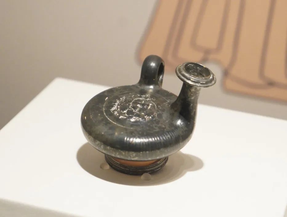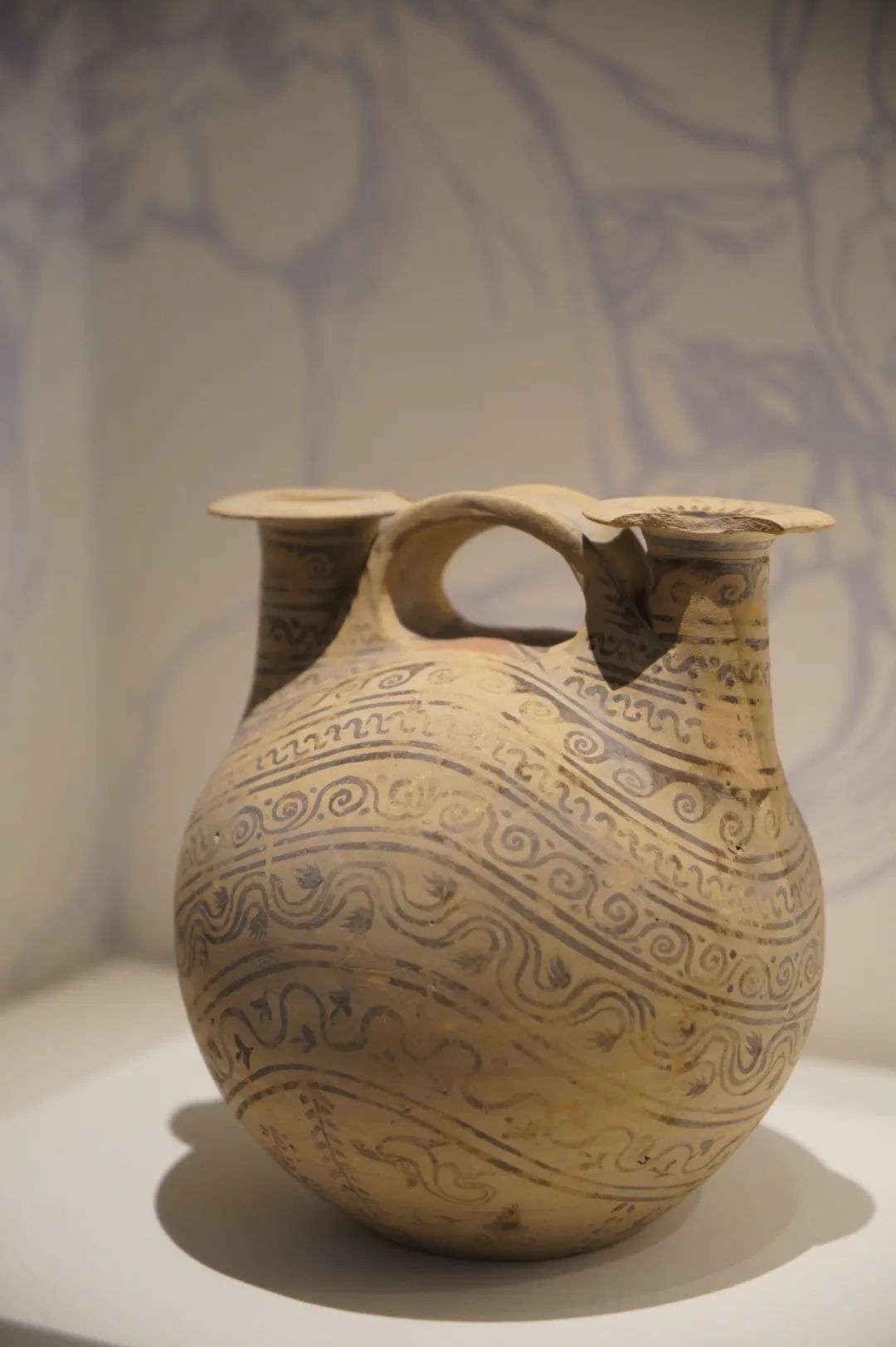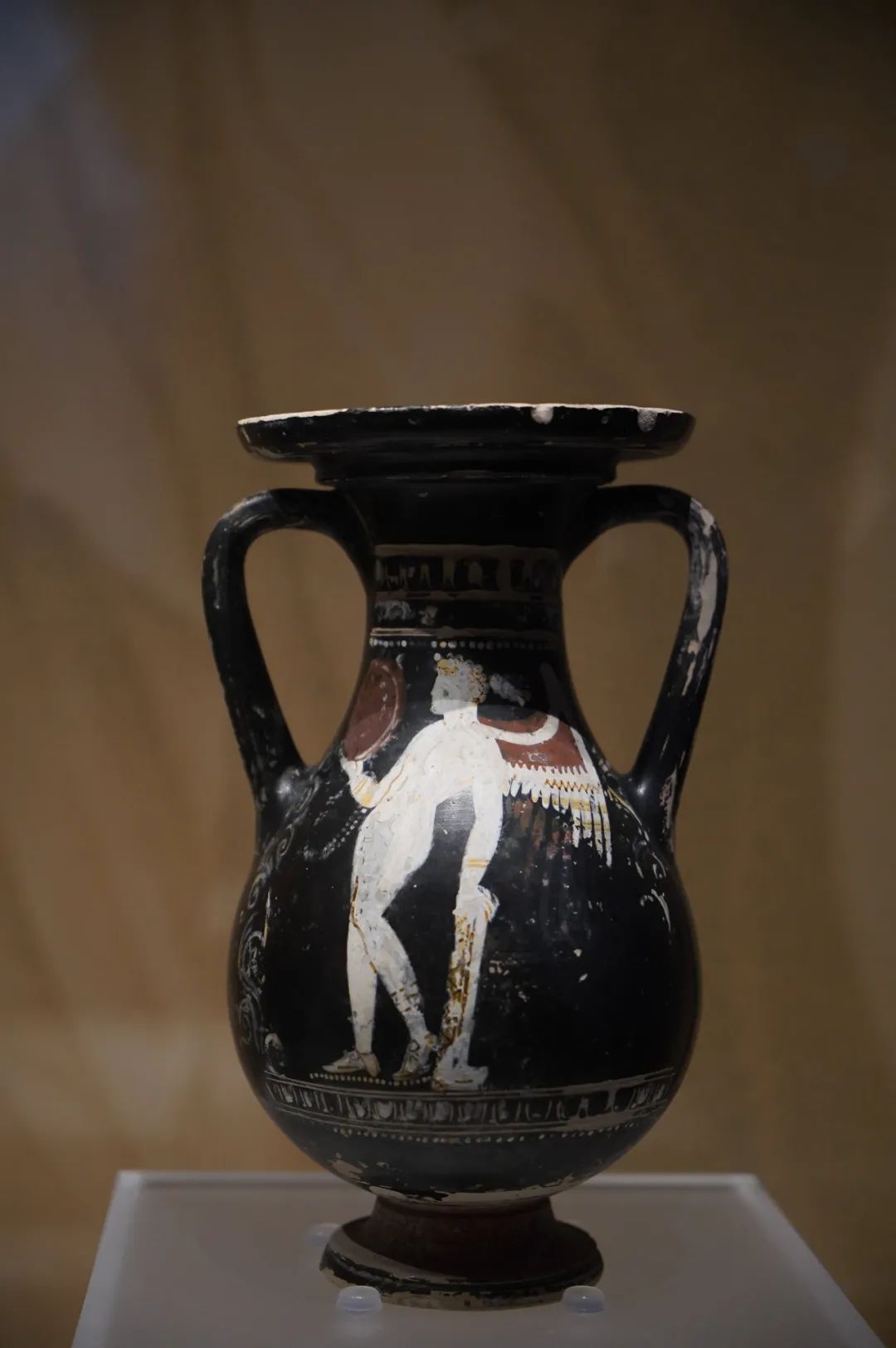 当然,除了这些较为寻常的海洋元素,小都在这波文物中还发现了几个厉害“角色”,比如这只陶制覆彩壶,古希腊人通常用它来装橄榄油。