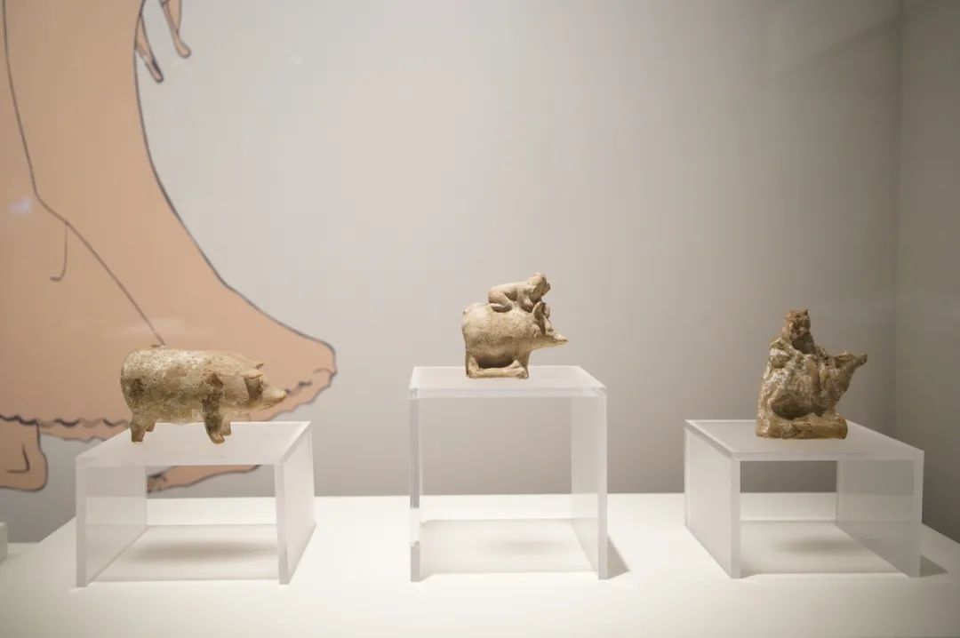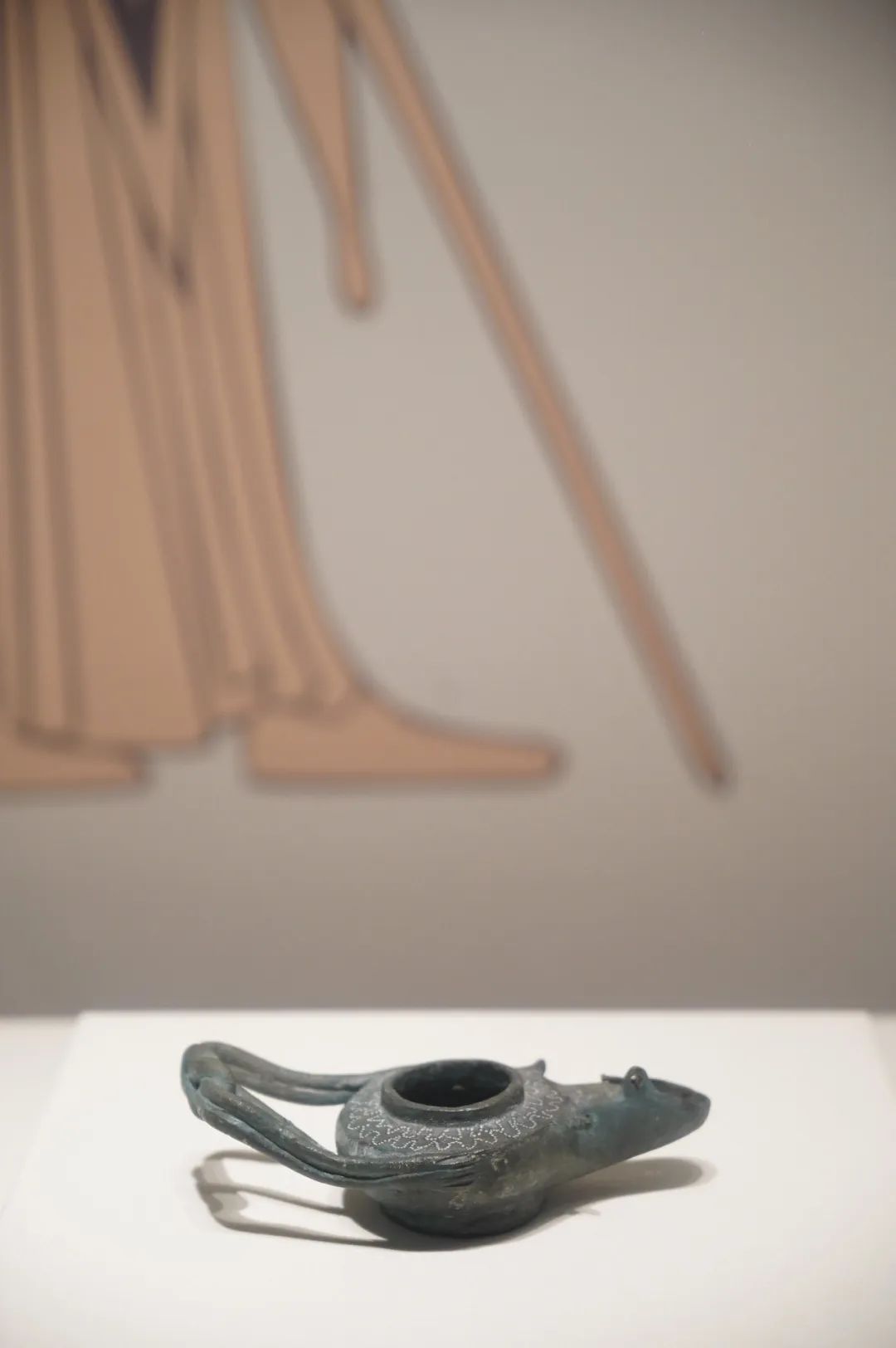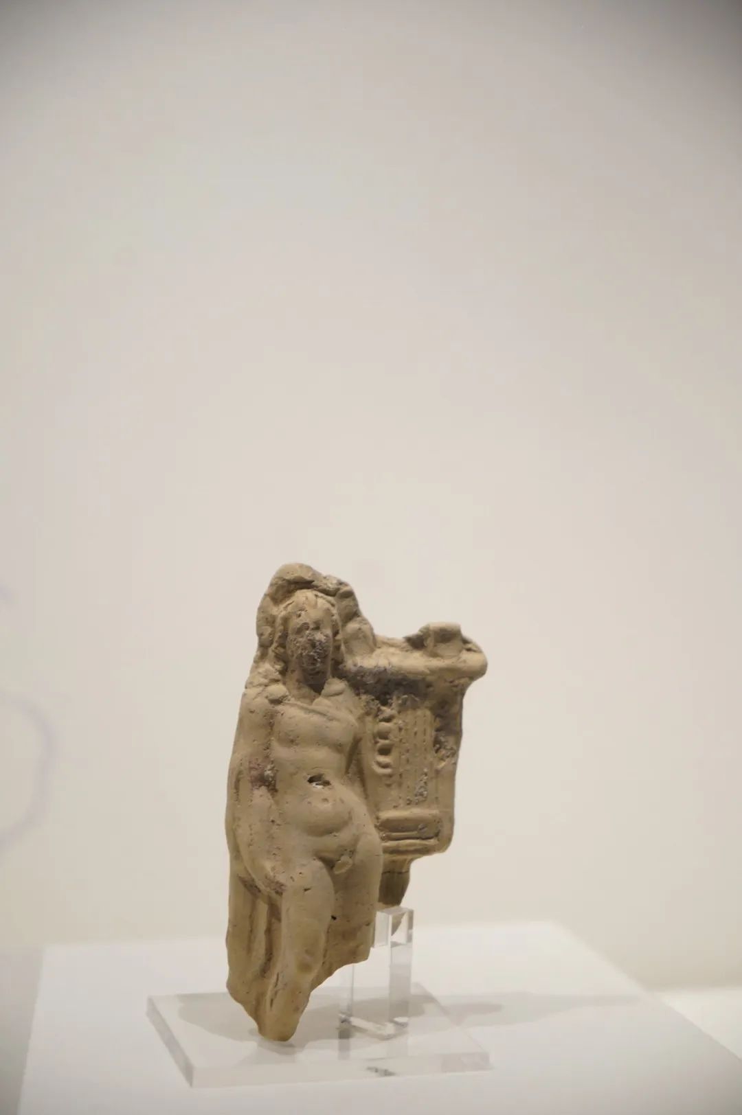 当然,除了七弦琴,在现场展出的藏品中,还能看见手鼓、动物形状响铃等乐器,以及各式各样的演奏场景,足以见古希腊人精神生活的丰富性。
