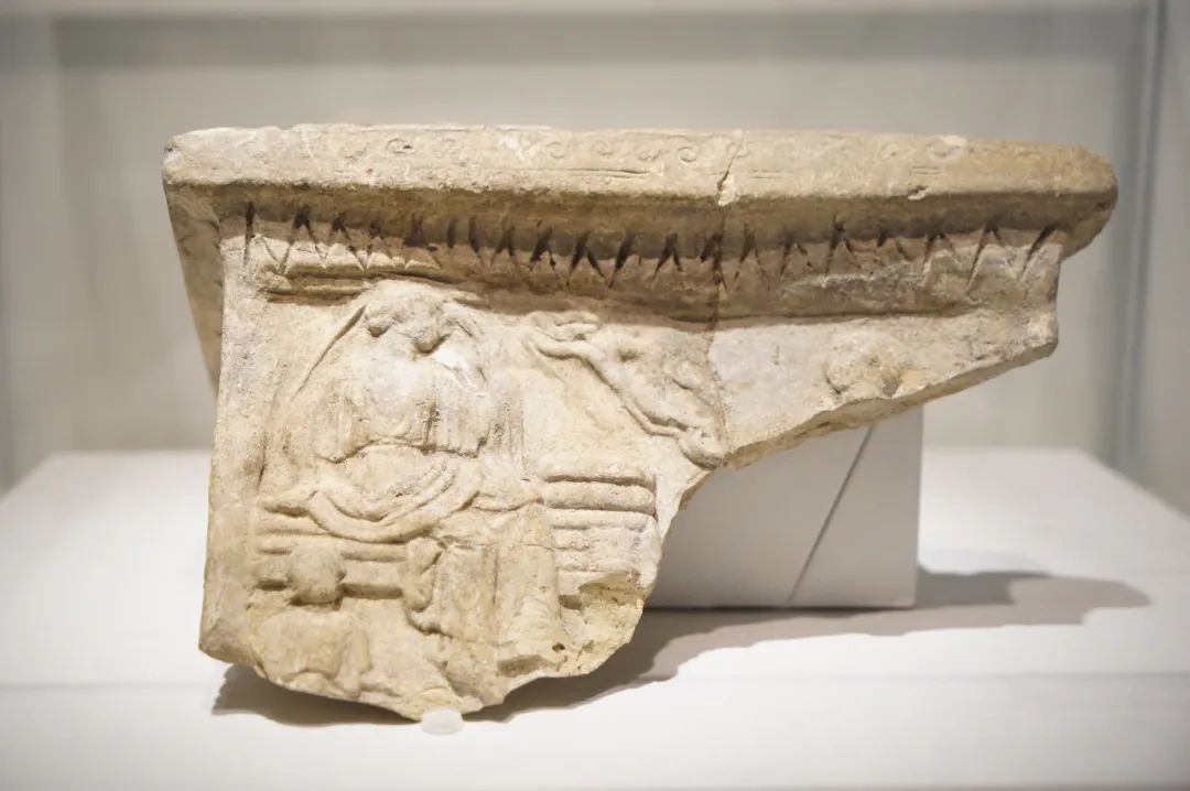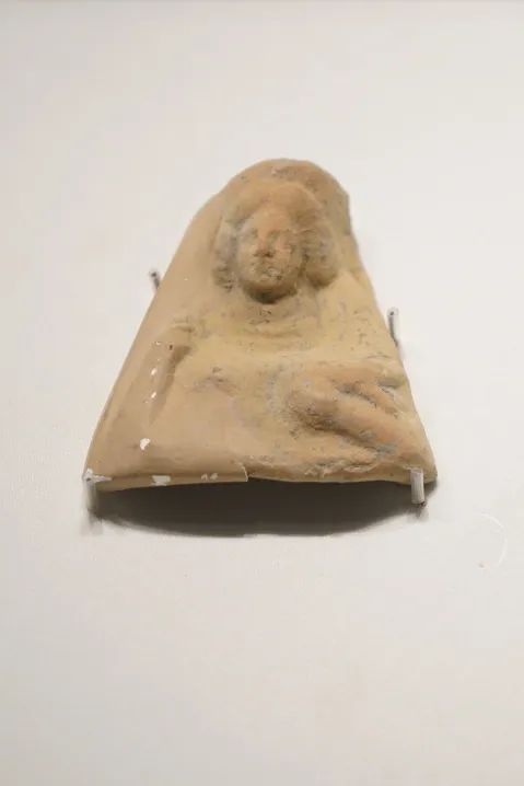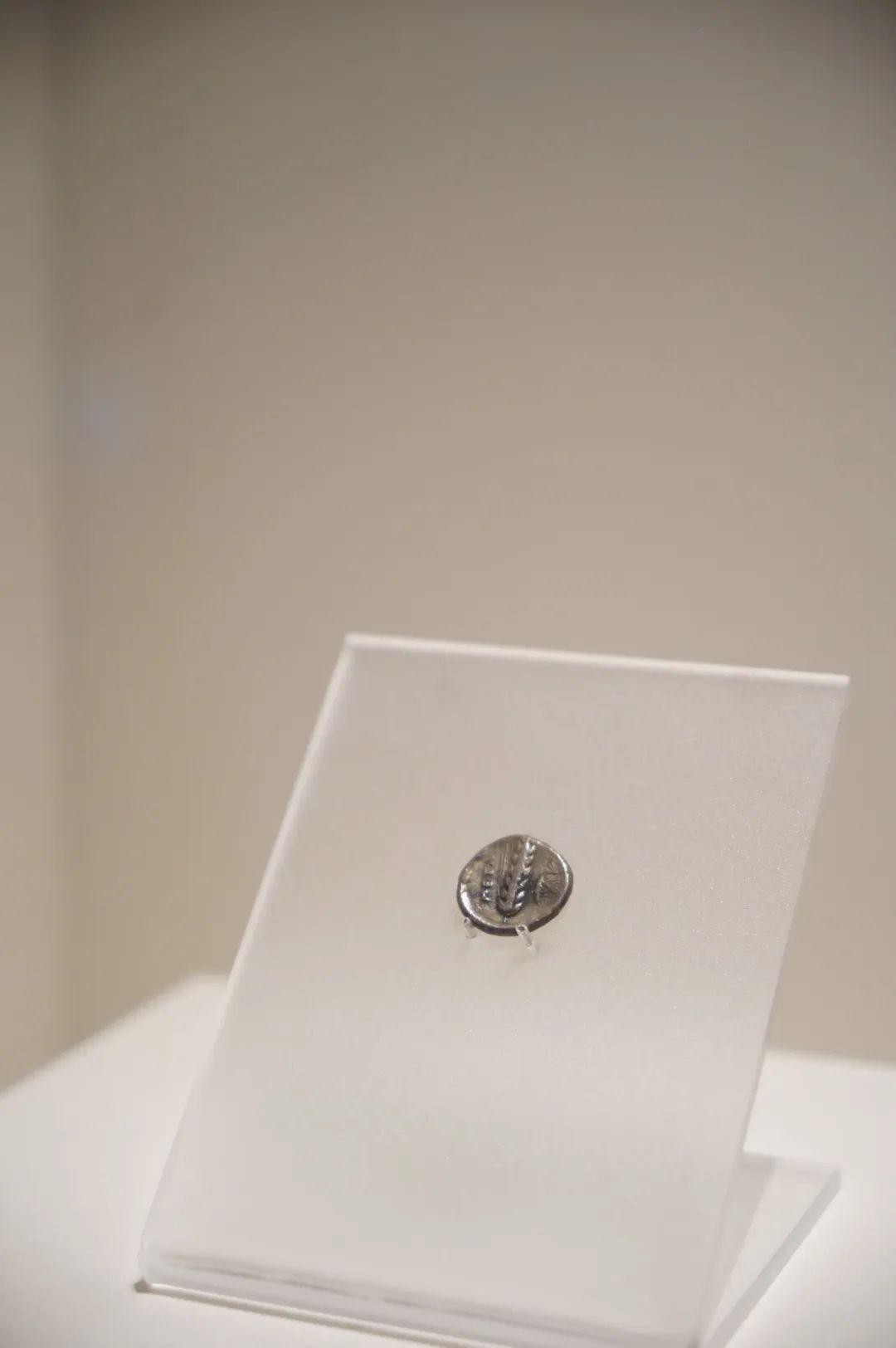 比如这枚银质标准币,上面便有德墨忒耳形象和麦穗图案;不远处的两个陶制浮雕板中,德墨忒耳或是拿着小水果,或是手捧小猪,它们都代表着土地的丰饶。