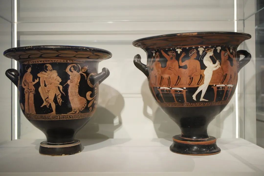 ·阿提卡式红绘双耳杯、卢坎尼亚式红绘调酒缸