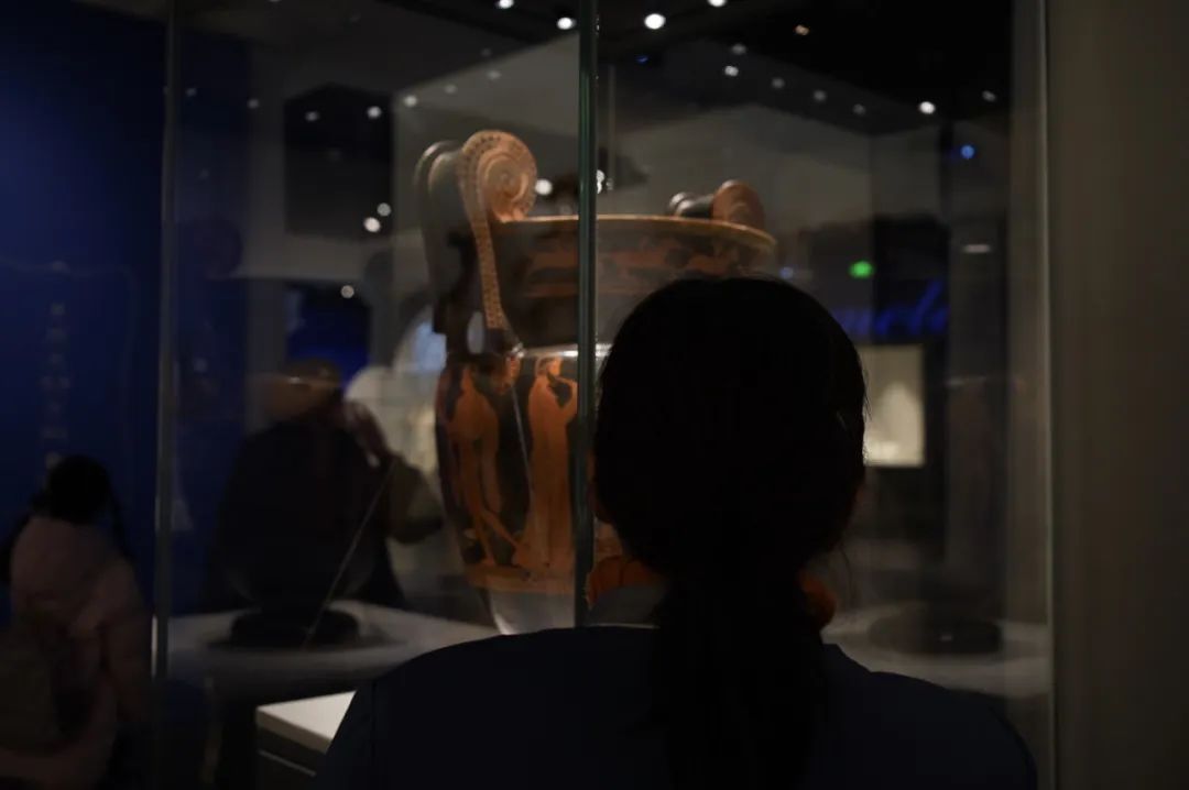 此次金沙遗址博物馆的《古希腊:神话·英雄·命运——来自意大利普利亚地区的珍藏》展览,在体量上并不大,但整个展览做得很精巧,除了丰富的文物藏品,现场还设置了不少互动装置,例如可以闻的香氛、可以随意翻转的十二功绩板块等。