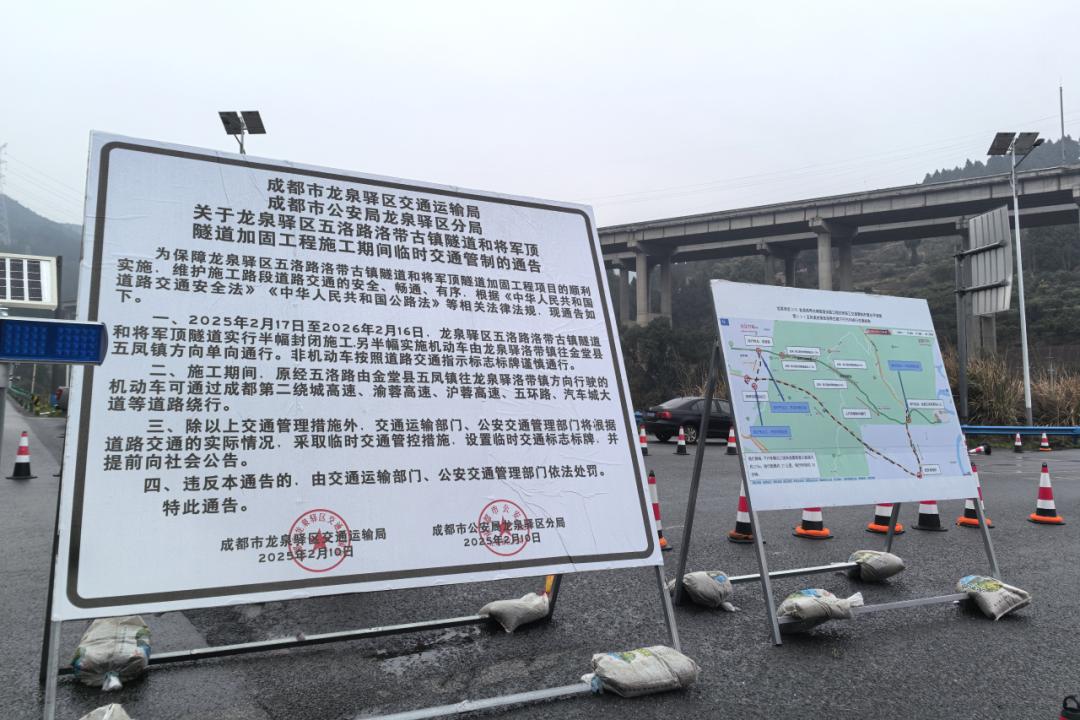 五洛路是一条连接龙泉驿区与金堂县的交通纽带。2月17日晚11点,龙泉驿区五洛路洛带古镇隧道和将军顶隧道加固工程开始实行半幅封闭施工,为期1年的隧道加固工程正式拉开序幕。