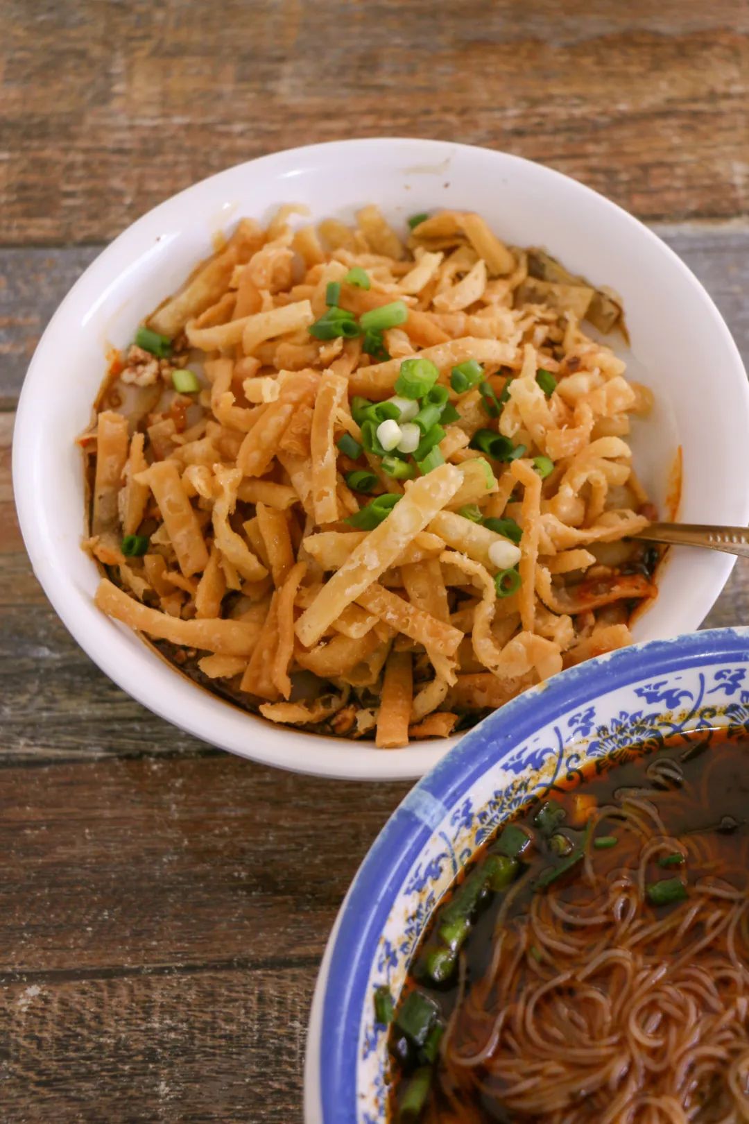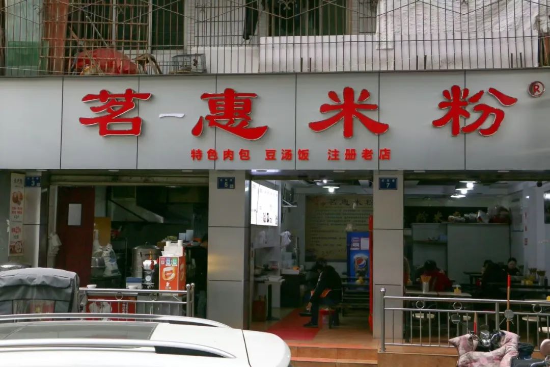 乘坐早上8点44分的高铁,10点我们已经坐在茗惠米粉的店里,一碗肥肠米粉,一碗油茶,开吃。