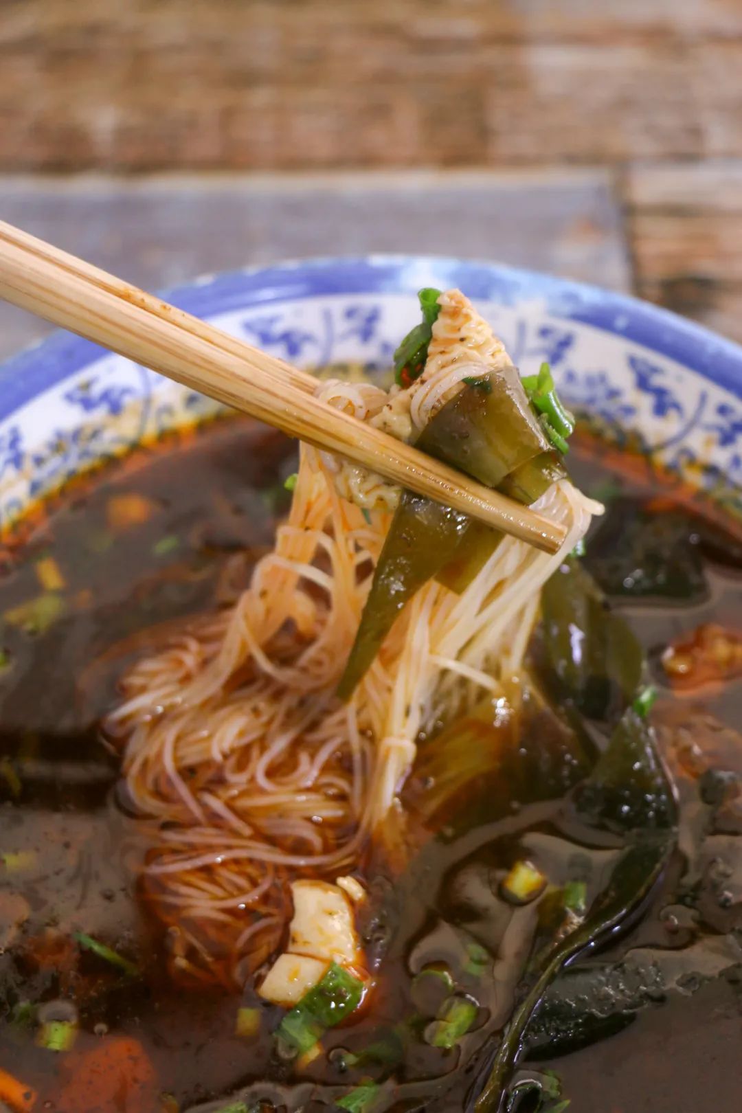 这家是江油人从小吃到大的老店,细粉厚油,米粉糯而不烂,汤汁麻辣香浓,还能吃到一点药材味,只是肥肠太少,午饭再补上。
