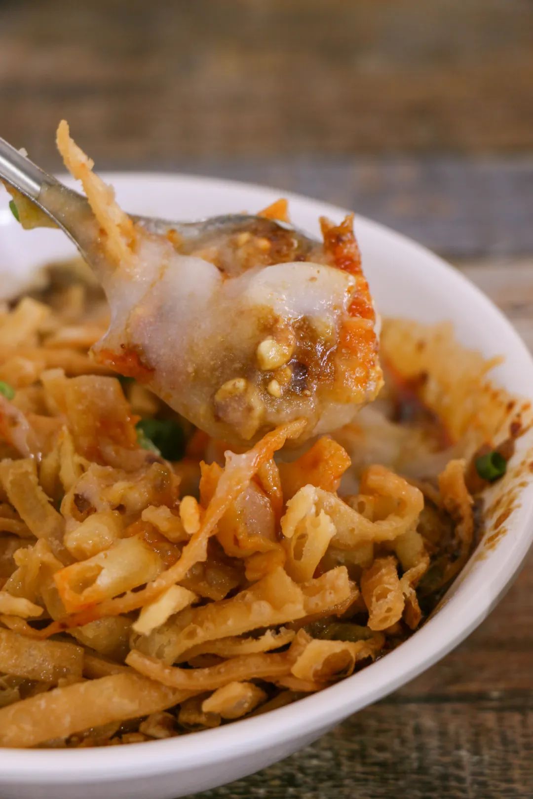 小城过早,油茶也是标配。软乎乎的米糊里,加了一大勺辣椒油,撒了细长的撒子、花生碎、榨菜丁、葱花,搅拌均匀,每一口都有丰富层次。