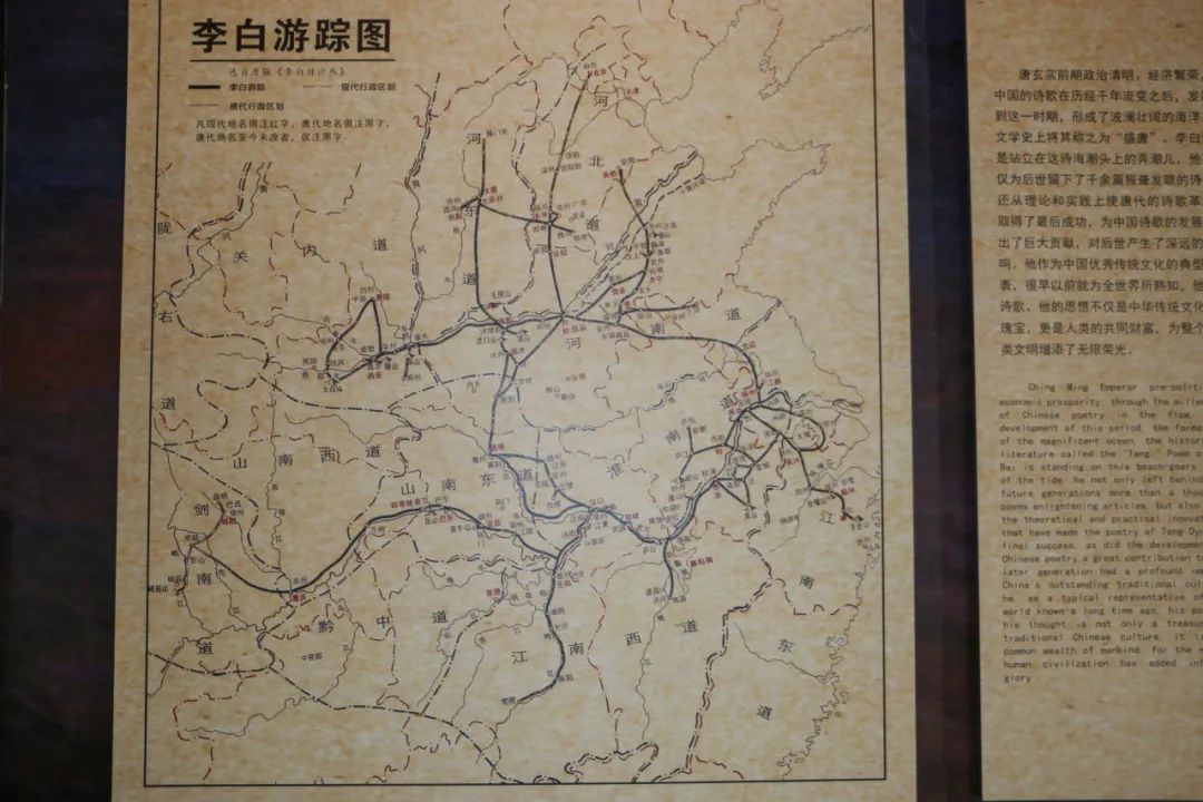 以七个单元介绍着李白生平事迹展的太白书屋,全方位地展示了诗仙澜壮阔的一生。在不同年纪、不同地方、不同际遇下写的诗,或与之相关的文物、古籍等,都在此集中呈现。