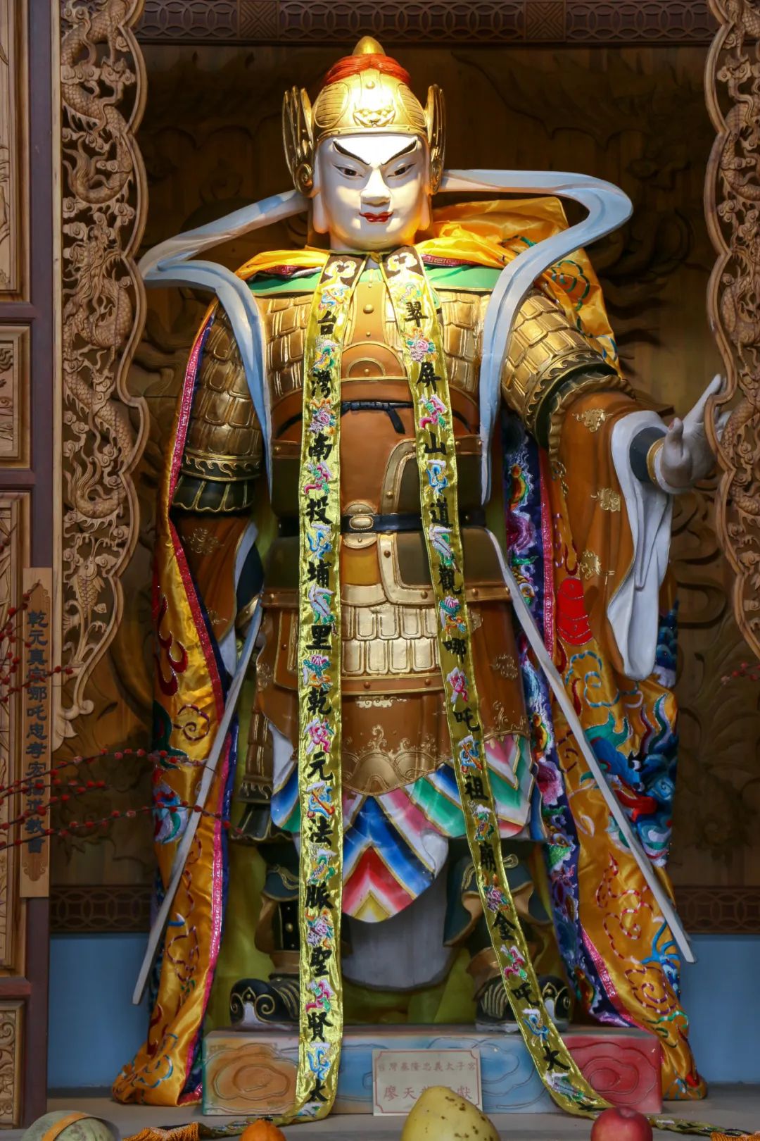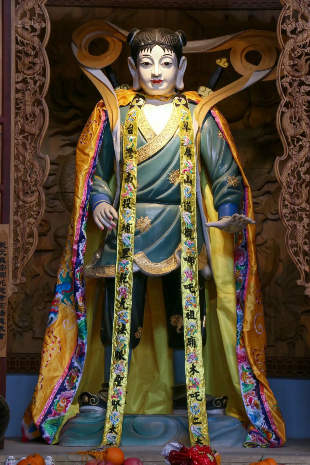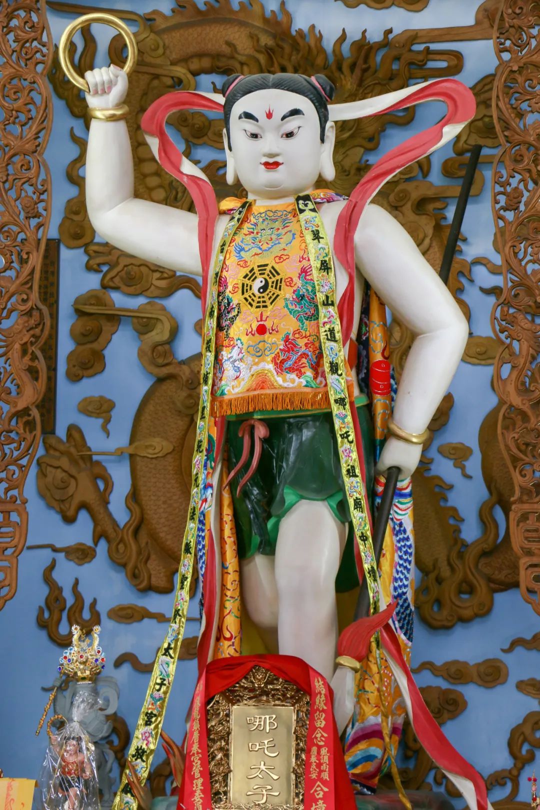 哪吒殿位于最高处,走近看,殿内正中央便是哪吒,其左右则是木吒和金吒。