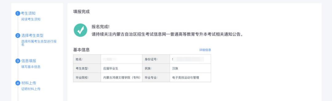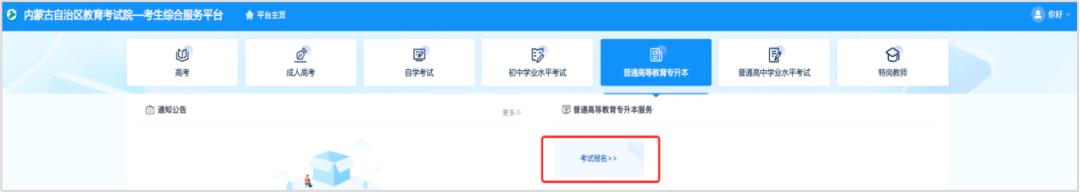 内蒙古自治区2025年普通高等教育专科升本科考试网上报名流程