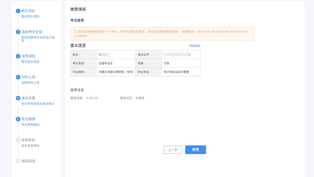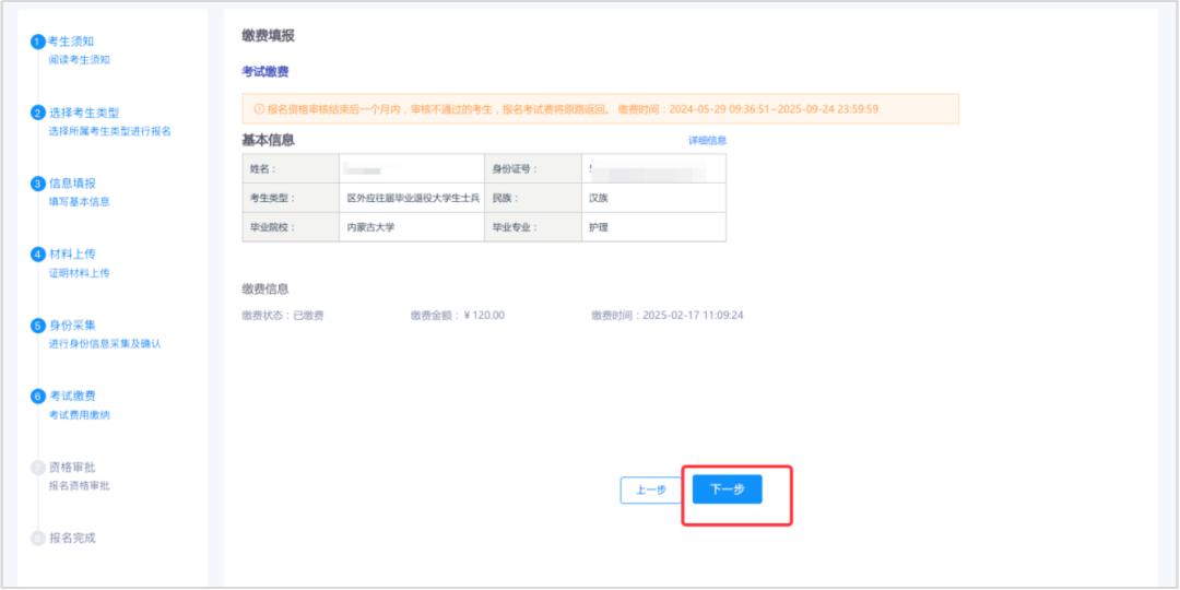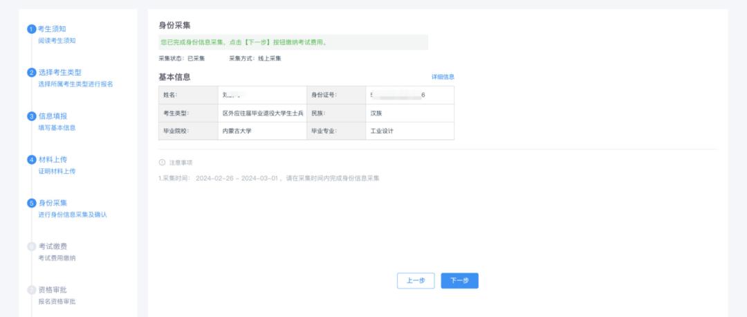 采集完成后刷新电脑端报名系统当前页面,出现如下界面时,点击下一步按钮。